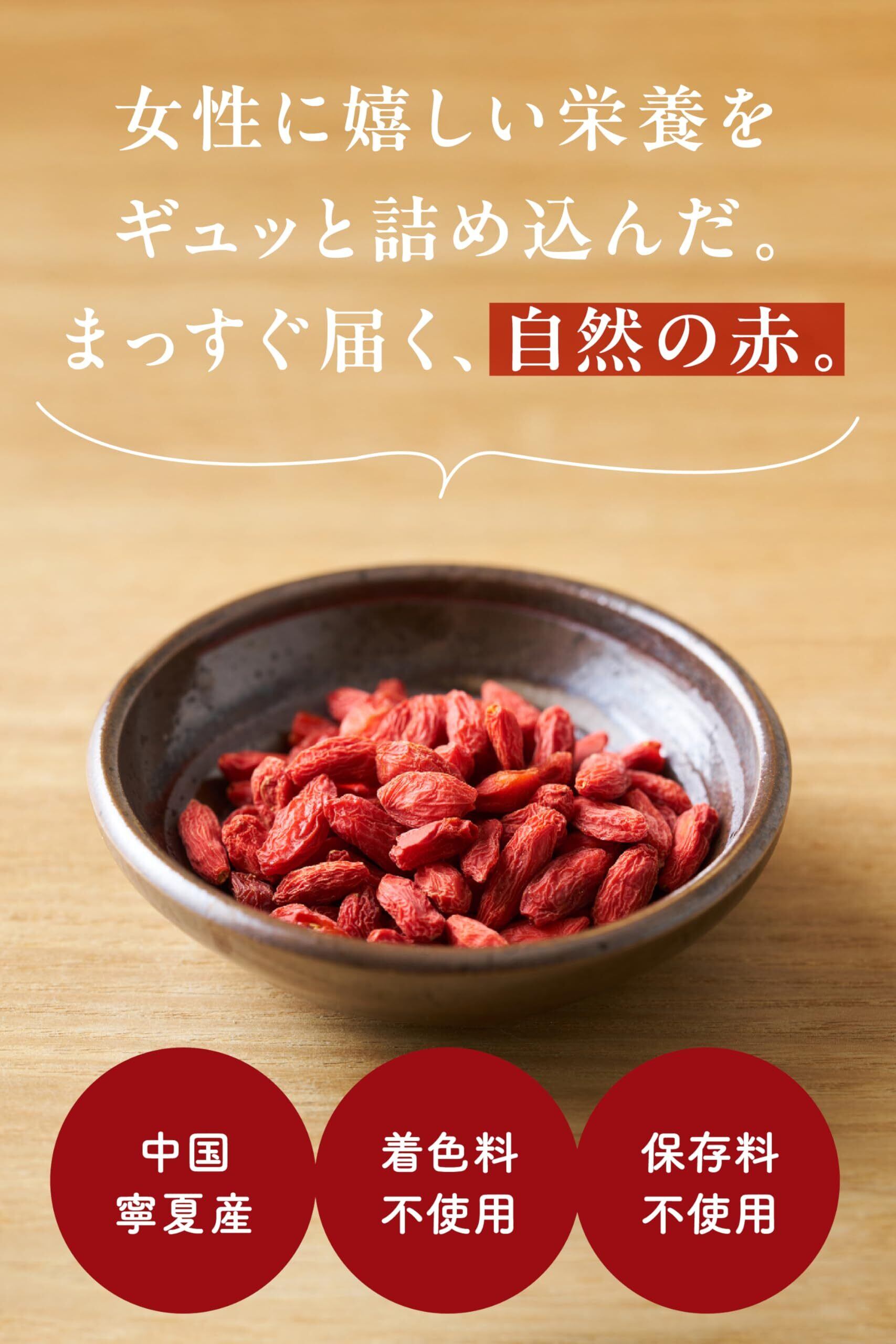 ※実に少し色ムラ・黒い斑点、緑色の箇所がある場合がございますが、コチラは手摘みの際・又は乾燥の工程時にクコの実の葉っぱが挟まって出来るもので、味・品質には問題はございません。 そのまま召し上がっていただいても問題ありませんのでご安心ください。