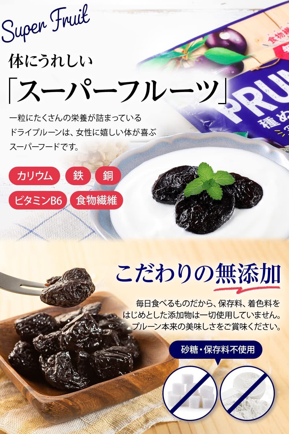 【体にうれしいスーパーフルーツ】一粒にたくさんの栄養が詰まっている種ぬきプルーンは、女性に嬉しい体が喜ぶスーパーフードです。保存に便利なチャック付きです。