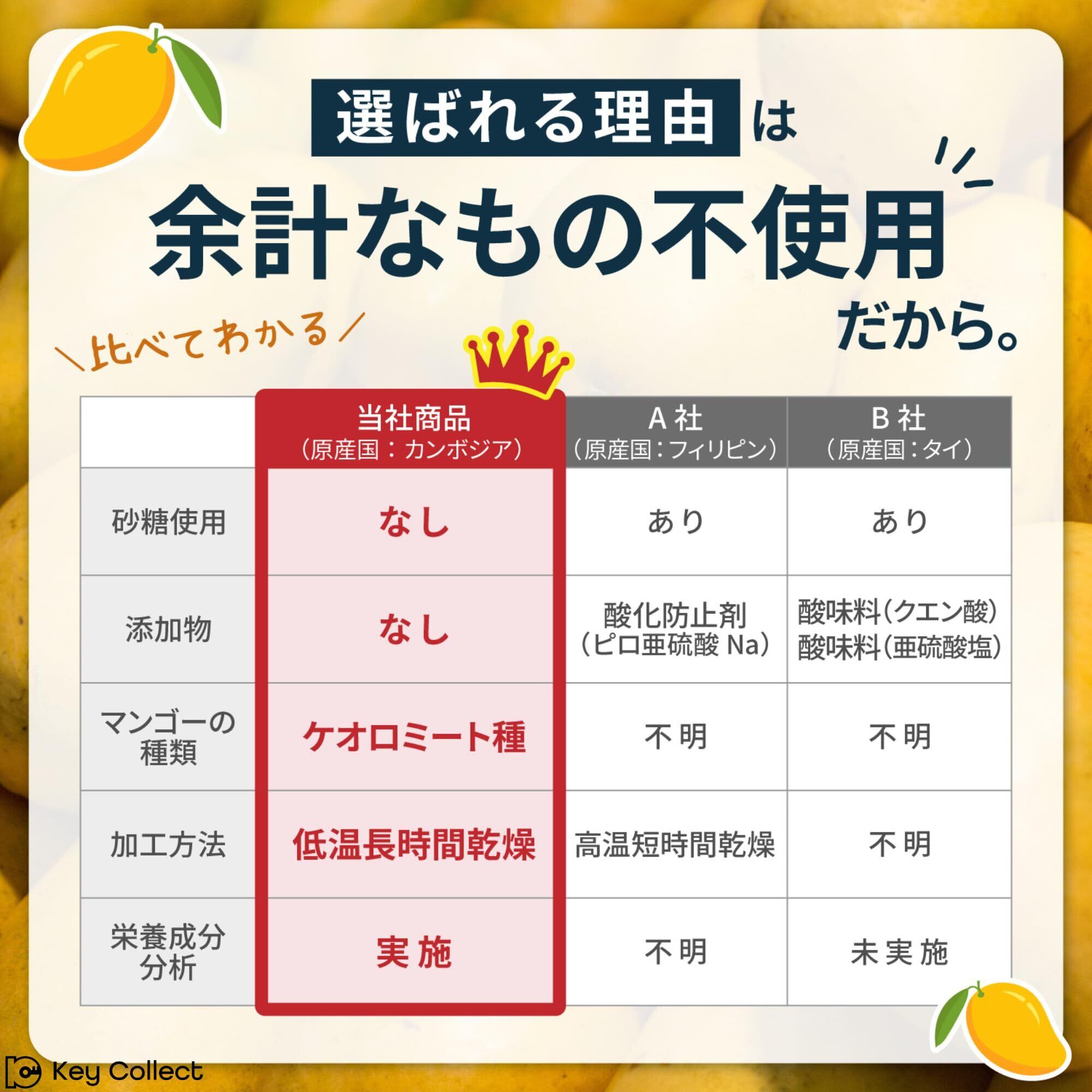 管理栄養士監修 ドライマンゴー 無添加 砂糖不使用 ドライフルーツ マンゴー 250g 残留農薬検査済|自然な甘みそのまま・おやつやヨーグルトに|低温乾燥製法・ケオロミート種 【Key Collect】