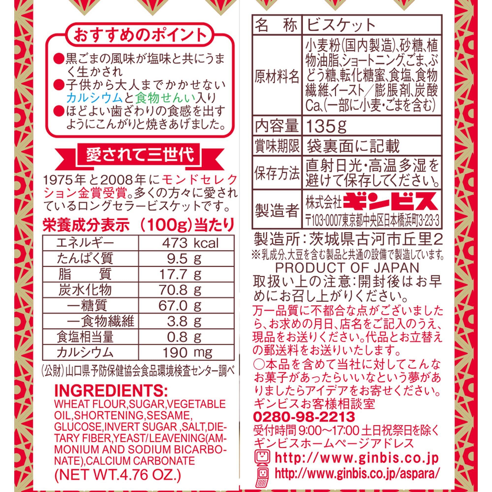 小麦粉、砂糖、植物油脂、ショートニング、ごま、ぶどう糖、転化糖蜜、食塩、食物繊維、イースト/膨脹剤、炭酸Ca