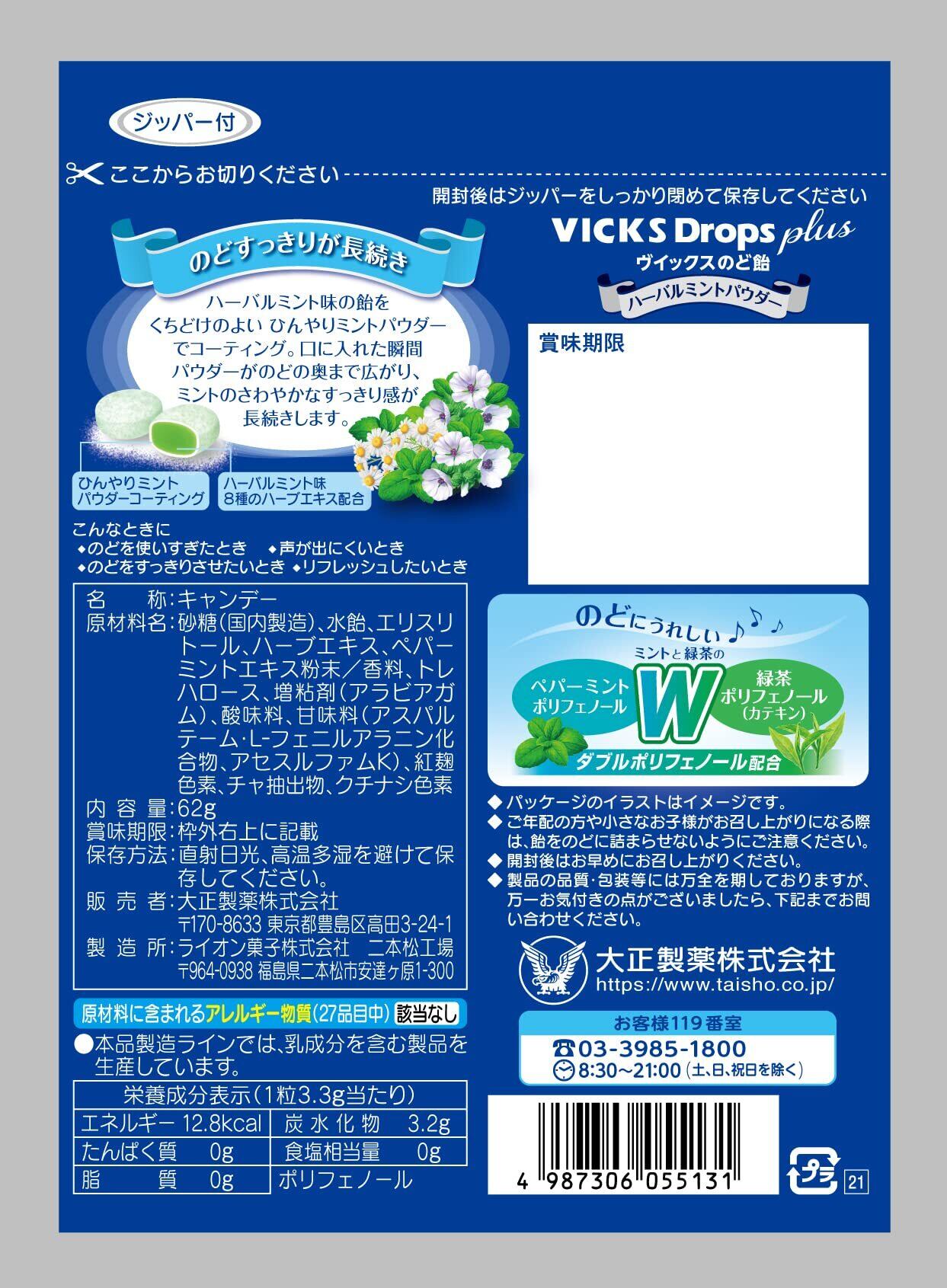 大正製薬 ヴイックスのど飴プラス ハーバルミントパウダー 62g ×6袋