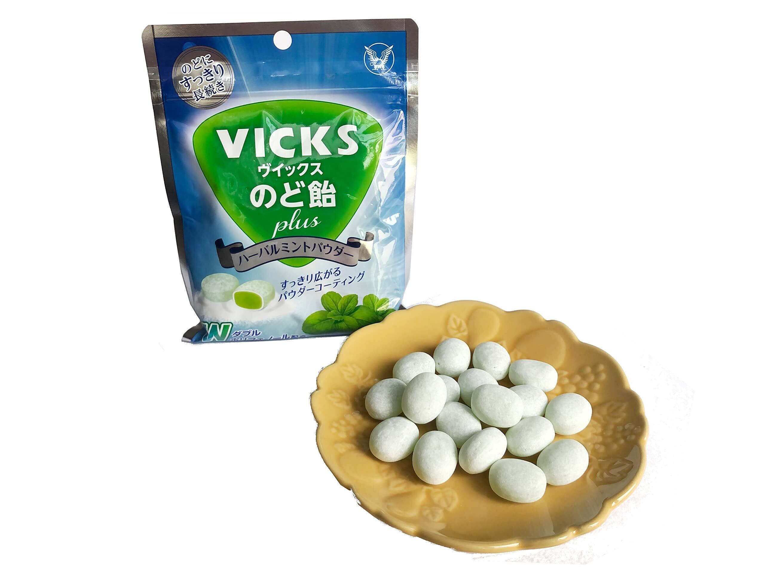●ヴイックスのど飴?プラス ハーバルミントパウダーは、のどにスーッと広がるくちどけのよいパウダーをコーティングしたのど飴?です。