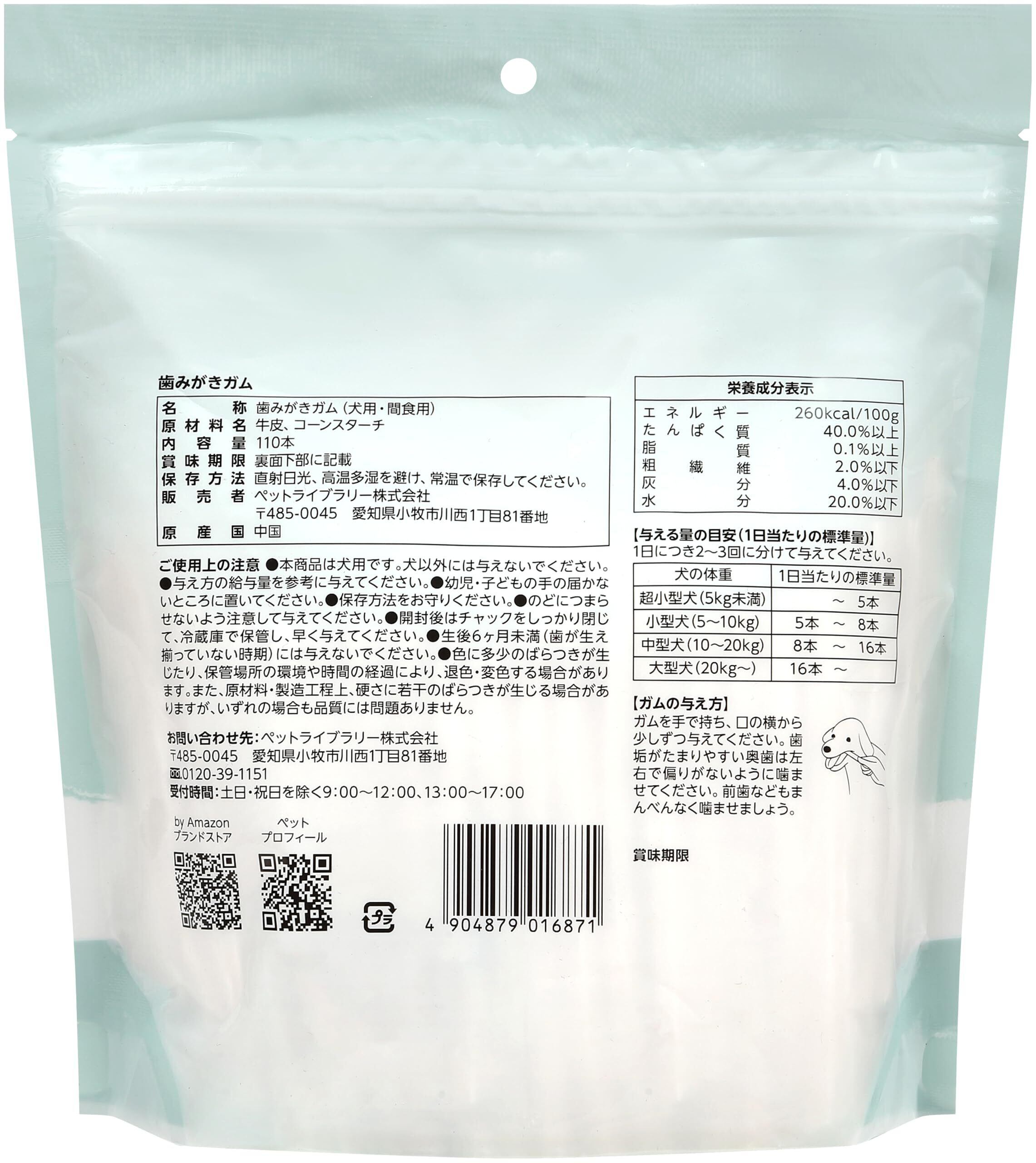 ・本商品は犬用です。犬以外には与えないでください。・与え方の給与量を参考に与えてください。・幼児・子どもの手の届かないところに置いてください。・保存方法をお守りください。・のどにつまらせないよう注意して与えてください。・開封後はチャックをしっかり閉じて、冷蔵庫で保管し、早く与えてください。・生後6ヶ月未満(歯が生え揃っていない時期)には与えないでください。・色に多少のばらつきが生じたり、保管場所の環境や時間の経過により、退色・変色する場合があります。また、原材料・製造工程上、硬さに若干のばらつきが生じる場合がありますが、いずれの場合も品質には問題ありません。