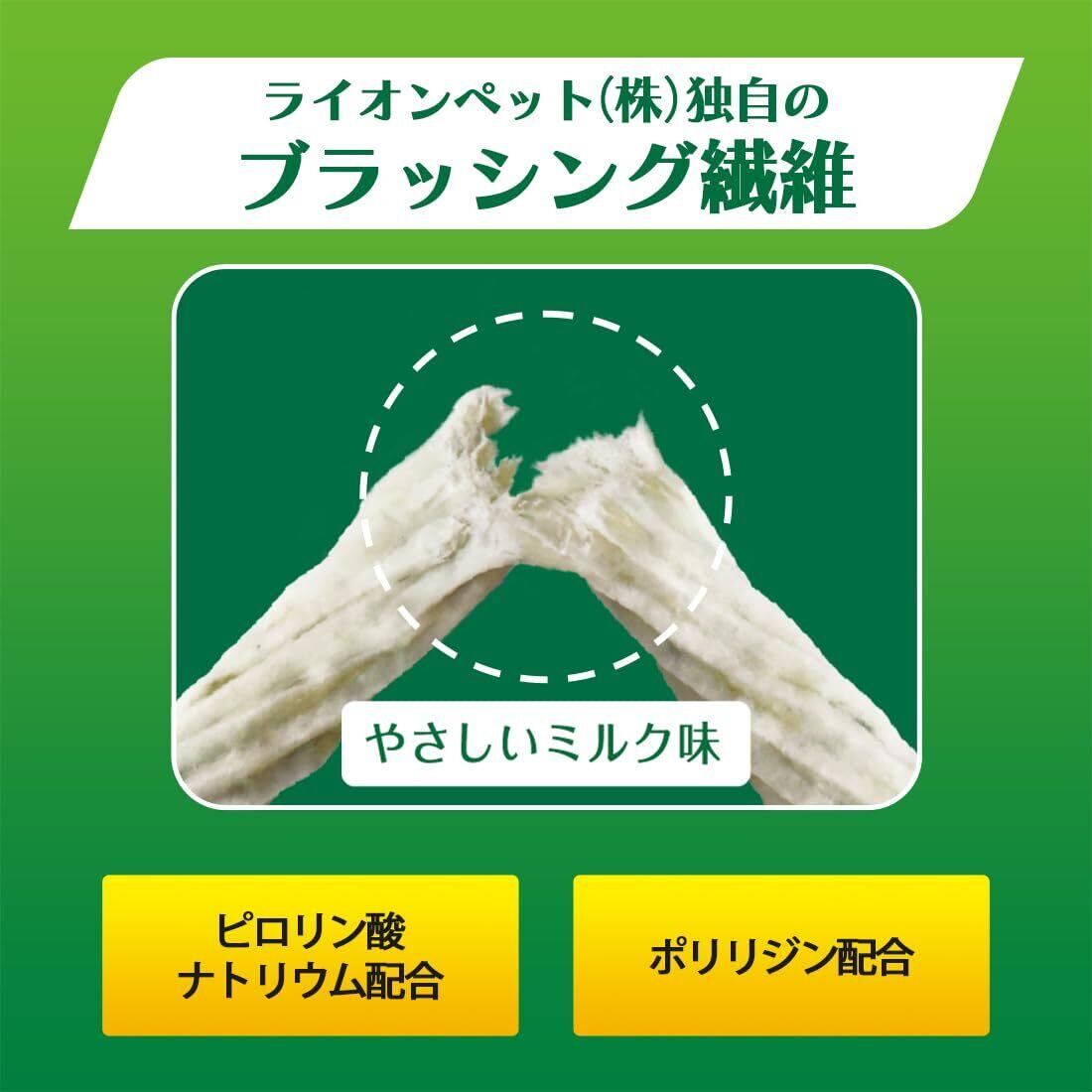 当社獣医師と共同開発した歯みがきガム。当社独自のブラッシング繊維のガムをギザギザねじり形状に。ギザギザねじり形状のガムを噛むことで、歯面の歯垢をかき出す。さらに噛むことで、歯垢を落として口臭を抑制。ミルク風味。ピロリン酸ナトリウム、ポリリジン配合。かためのガムが苦手なワンちゃんにおすすめ。