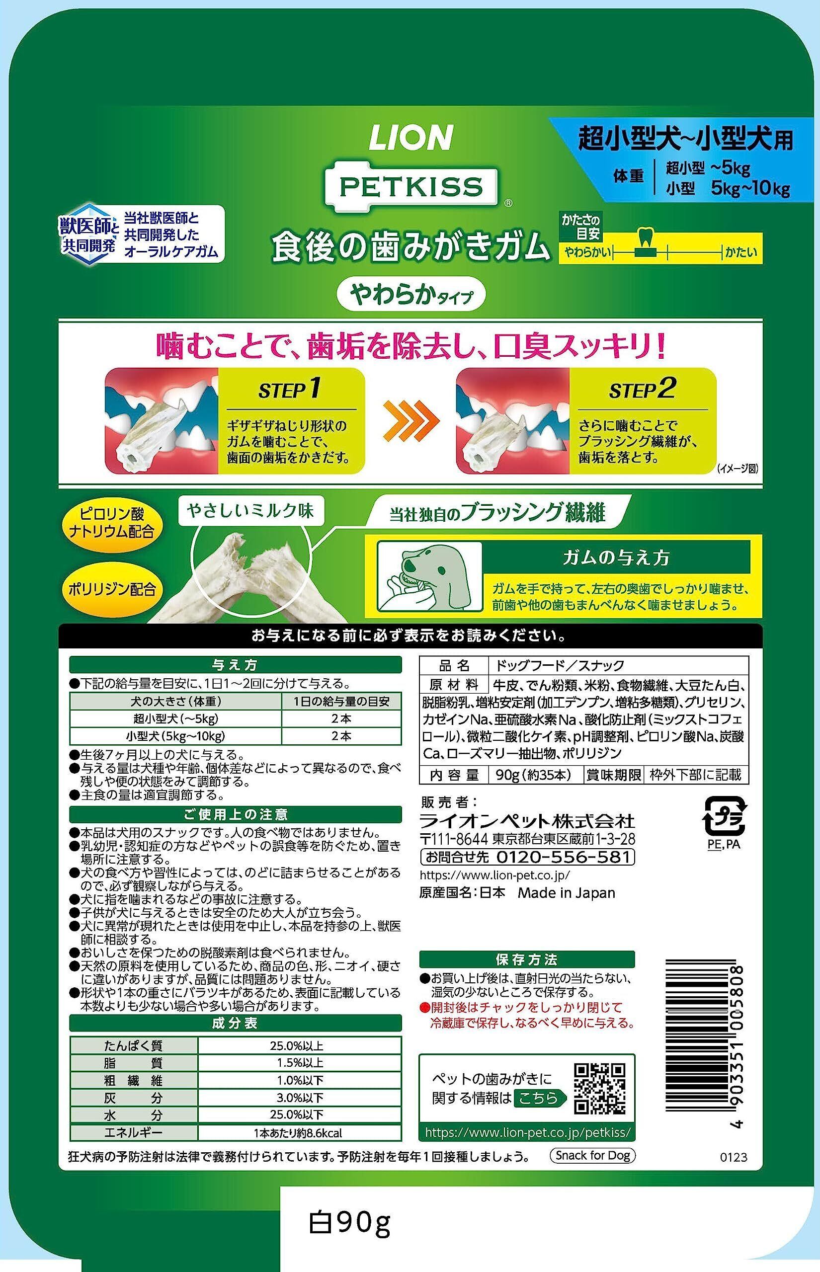 ライオン ペットキッス PETKISS 犬用おやつ 食後の歯みがきガム やわらかタイプ 超小型犬~小型犬用 LIONPET