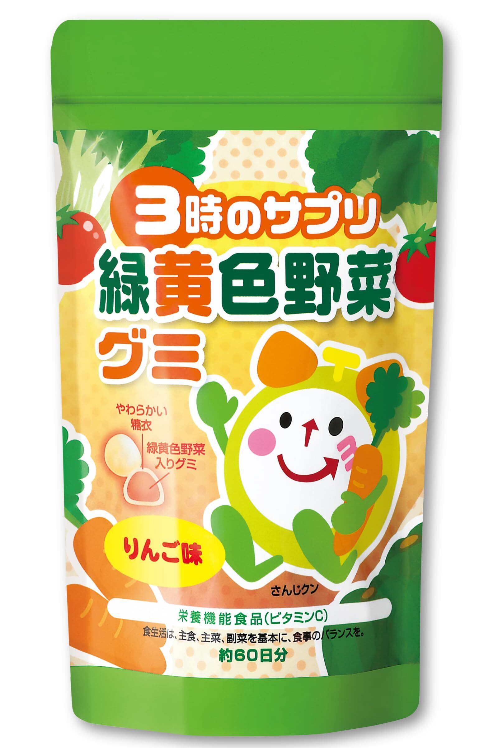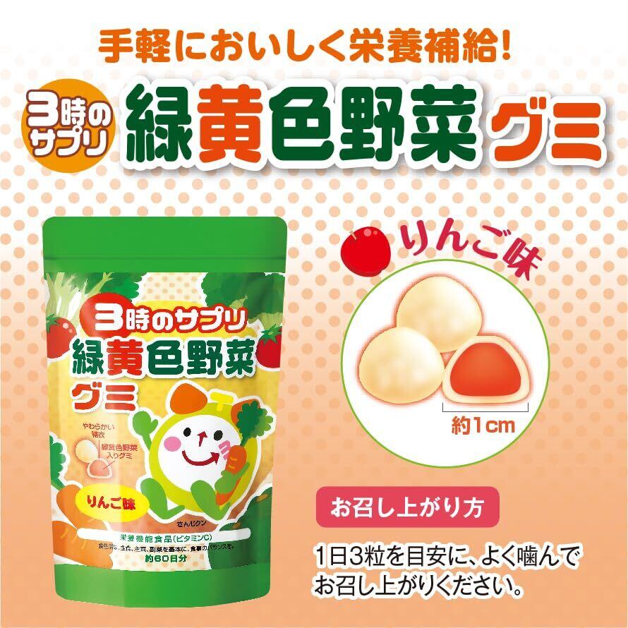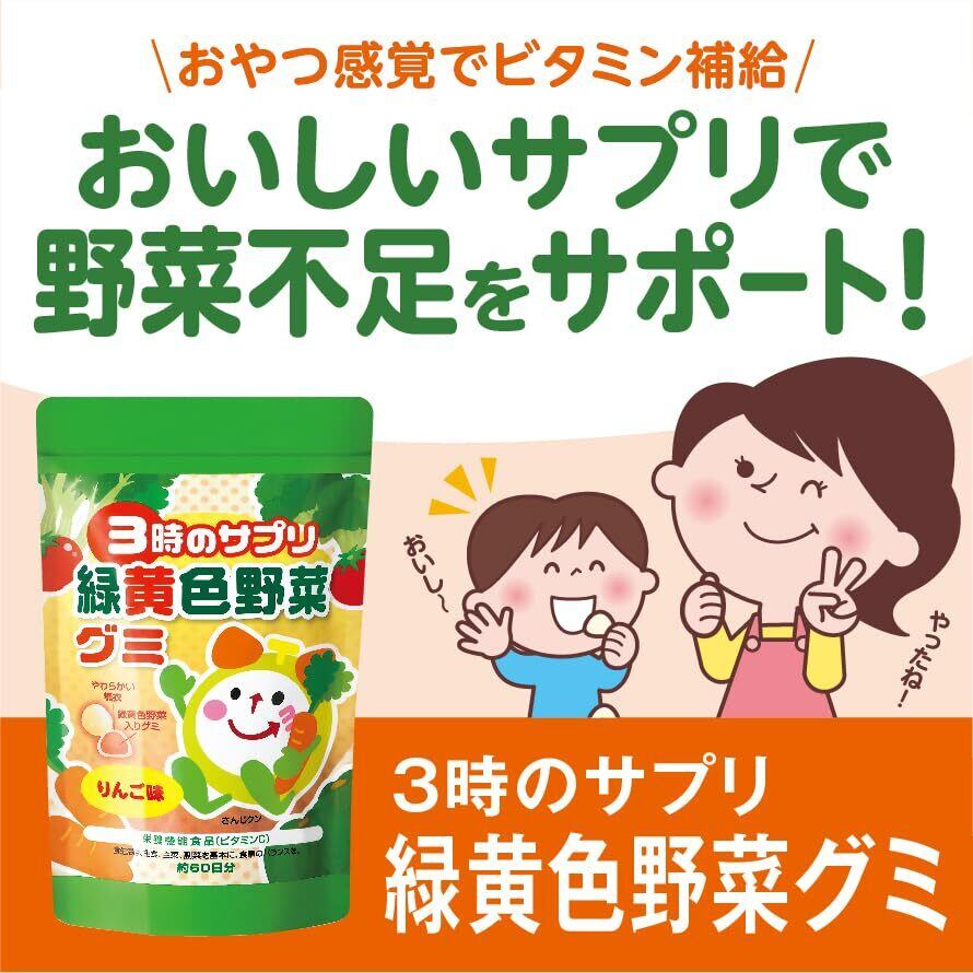 3時のサプリ 緑黄色野菜グミ 191g 日本製 野菜 グミ こども 子供 子ども 栄養補助 嫌い 野菜不足 美味しい おいしい りんご味 ビタミンC β-カロテン ビタミンB6 ビタミンD ビタミンE 健康食品 栄養機能食品 サプリ (1袋)