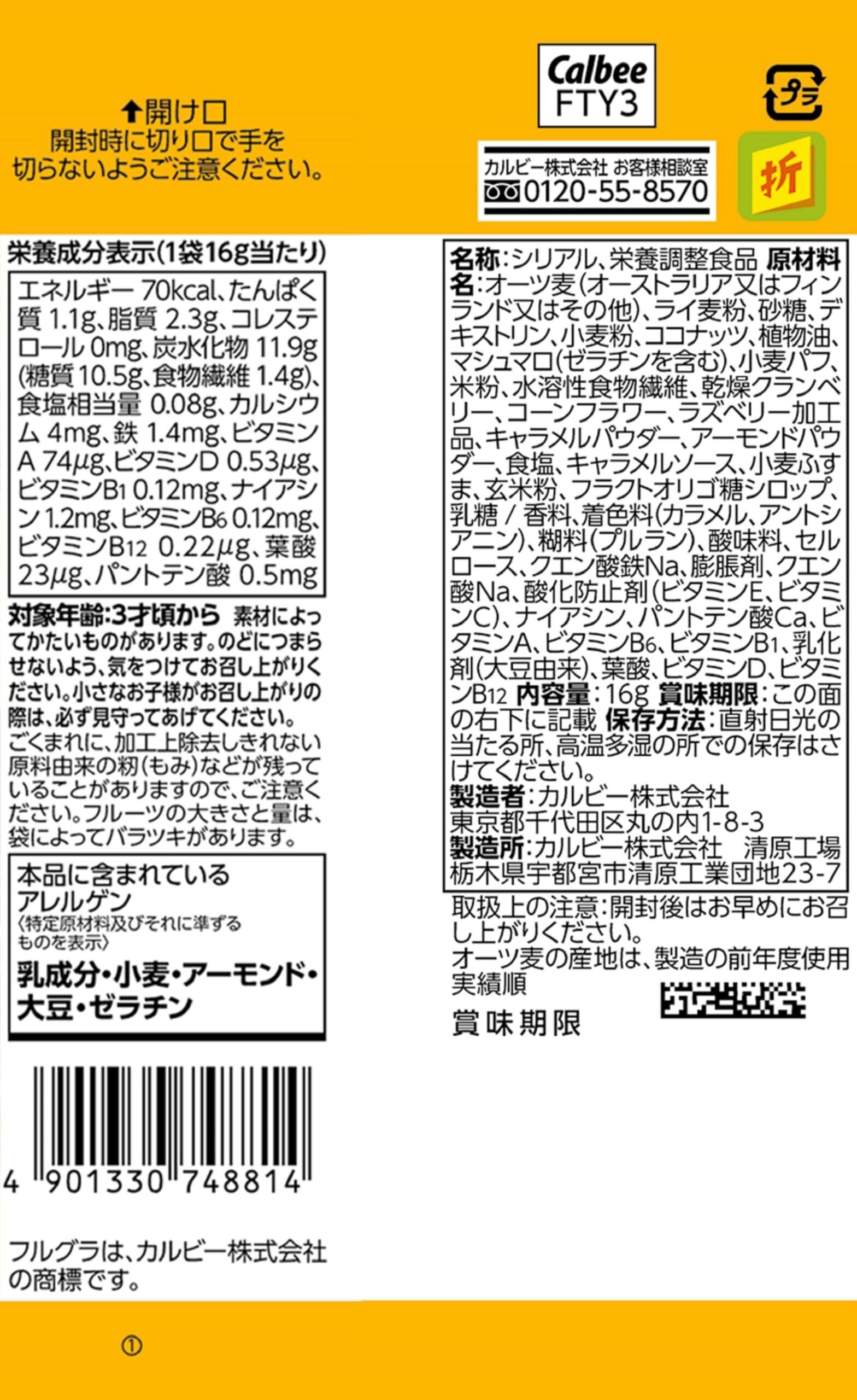 シリアル グラノーラ フルーツグラノーラ 食物繊維 鉄分 ビタミン calbee カルビー フルグラ ひとくちサイズ 間食 ミルクキャラメル キャラメル