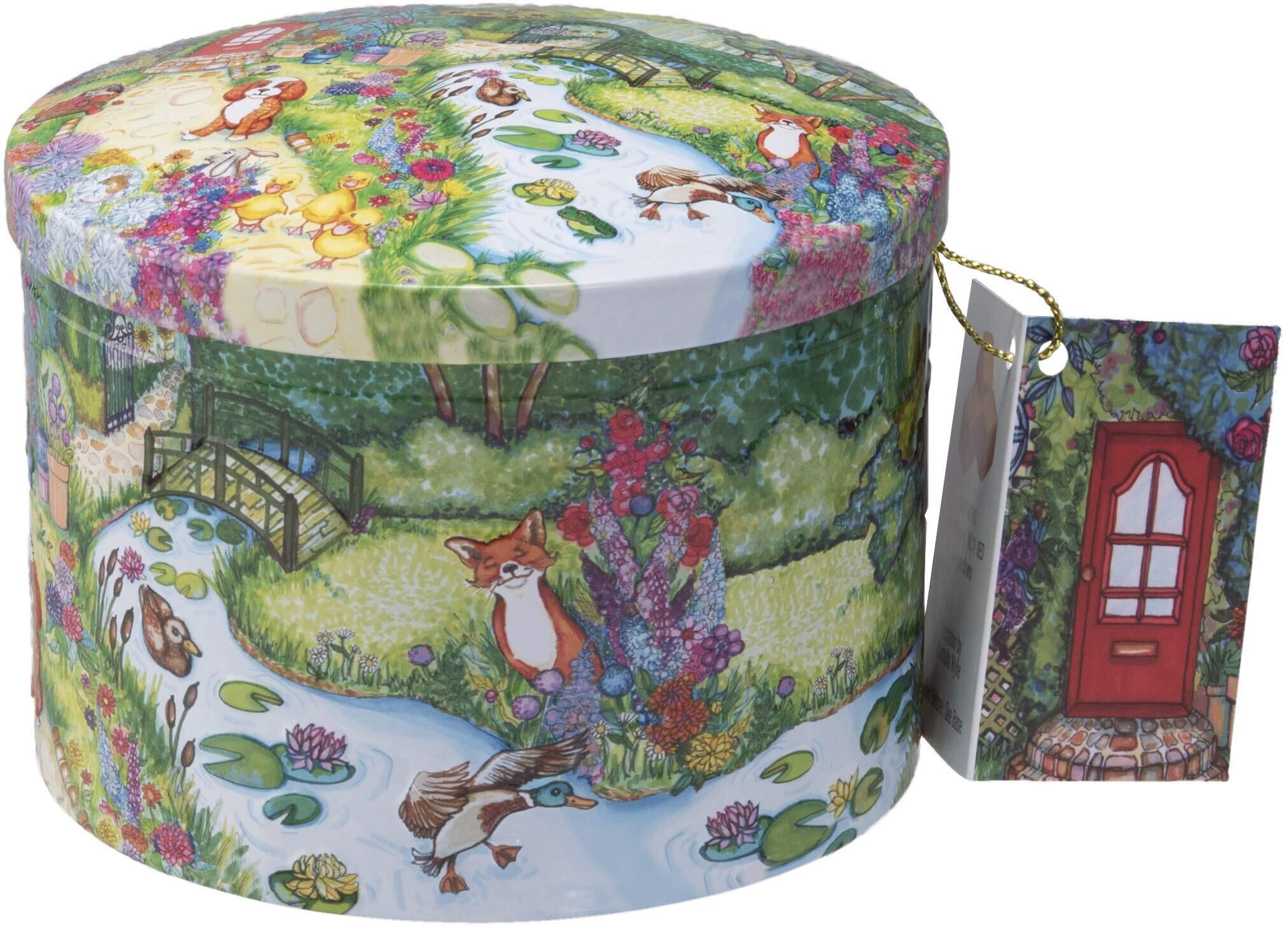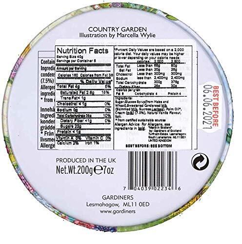 まるで絵本の世界を描いたような、イギリスの庭園をイメージしたエンボス缶に、クリームファッジを詰めました。現在のオーナーであるTomas Gardinerの父が1960年に始めたアイスクリーム事業から成長を遂げ、1985年に菓子製造を専門とする現在のGardiners of Scotlandが誕生しました。スコットランドの中心部にある自社工場で製造された、口の中でとろける手作りファッジと、美しくデザイン性の高いエンボス缶は贈り物としても喜ばれています。 原材料・成分 砂糖、ぶどう糖液糖(小麦を含む)、加糖脱脂練乳、植物油、クリーム、食塩/香料