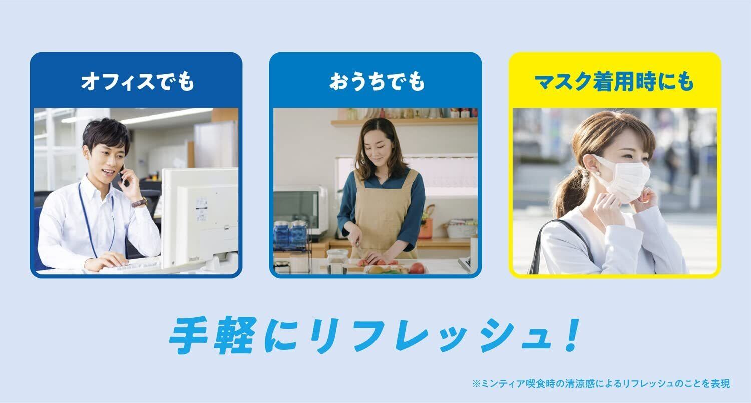 ミントのおいしさが味わえて、心地よい清涼感が持続する、大粒タイプ(1粒約0.75g)のミントタブレットです。シリーズの特徴である「ミントの美味しさ」と「心地よい清涼感」を踏襲しながらも、甘さを抑えたクリアな味わいで強めの清涼感を得られる商品に仕上げました。クリアな清涼感が長く続き、気持ちが澄み渡るような心地よさが感じられます。1粒で5分清涼感が長持ちし、何度も口に運ぶ必要がありません。携帯可能な薄型プラスチック容器入りで、服のポケットや鞄の中でもかさばらず、 音も気になりません。開閉はワンハンドで行えます。