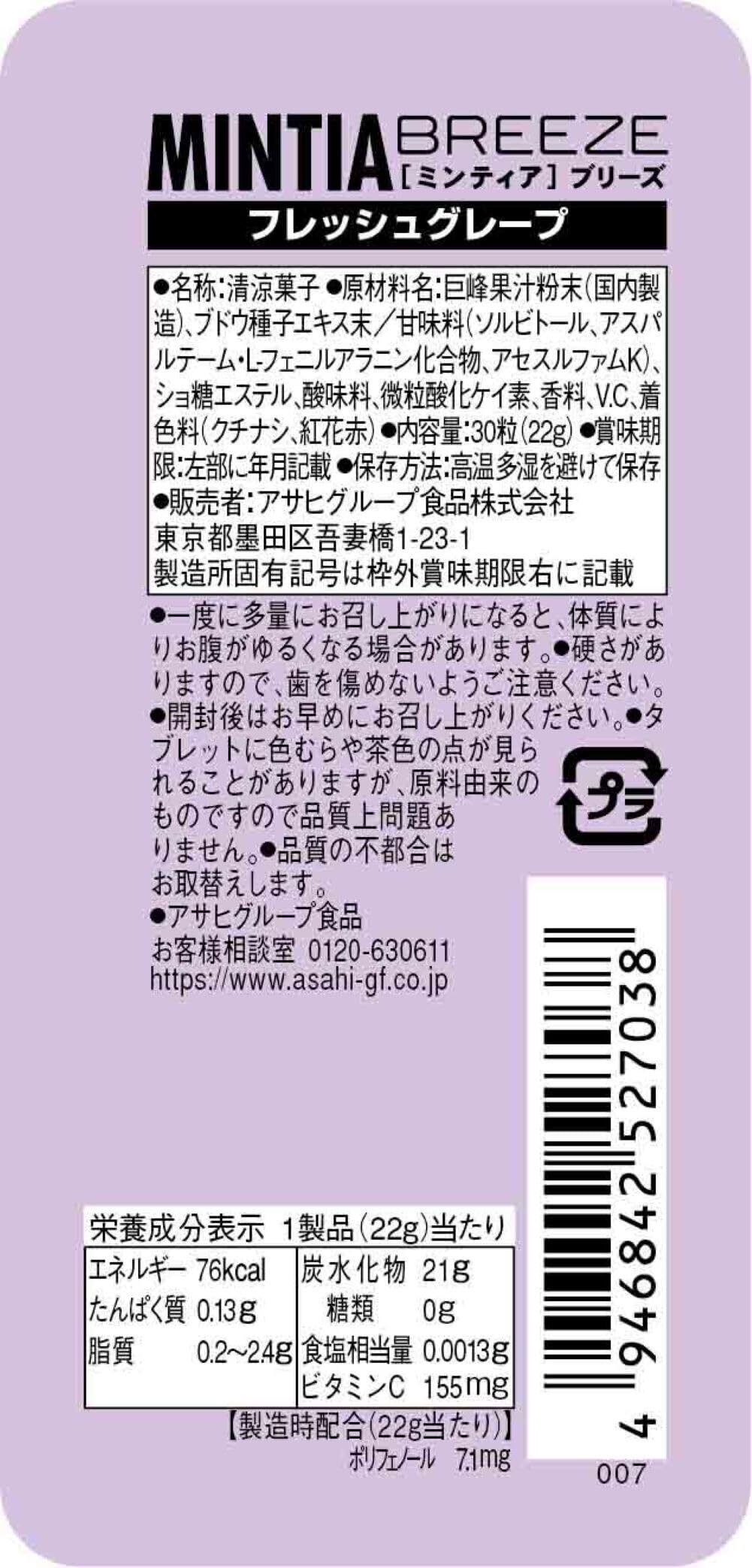 アサヒグループ食品 ミンティアブリーズ フレッシュグレープ 30粒 ×8個