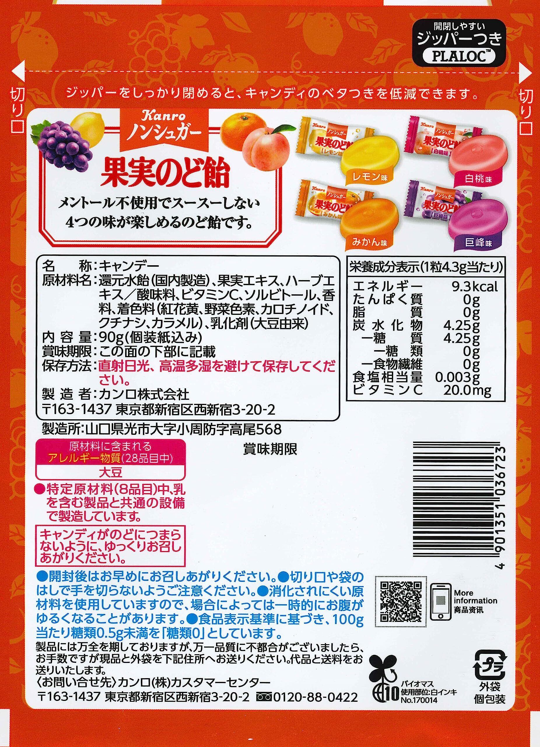 カンロ ノンシュガー果実のど飴 90g×6袋
