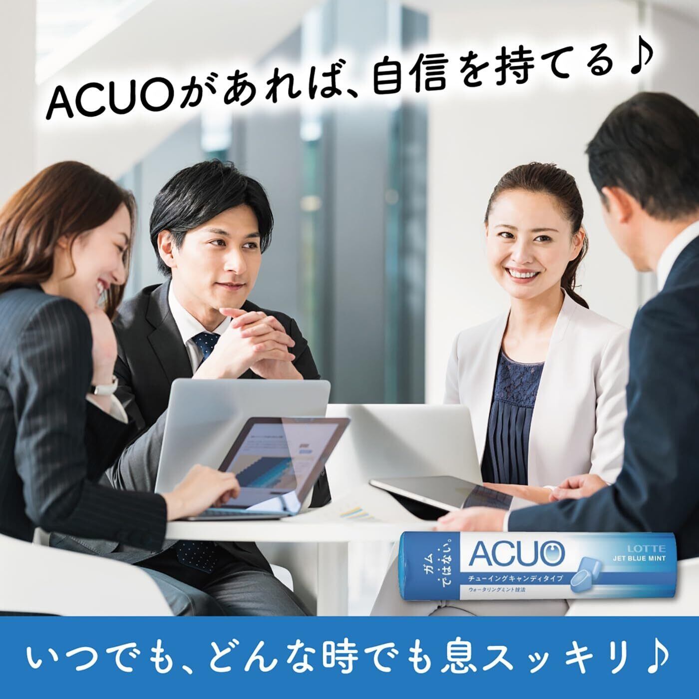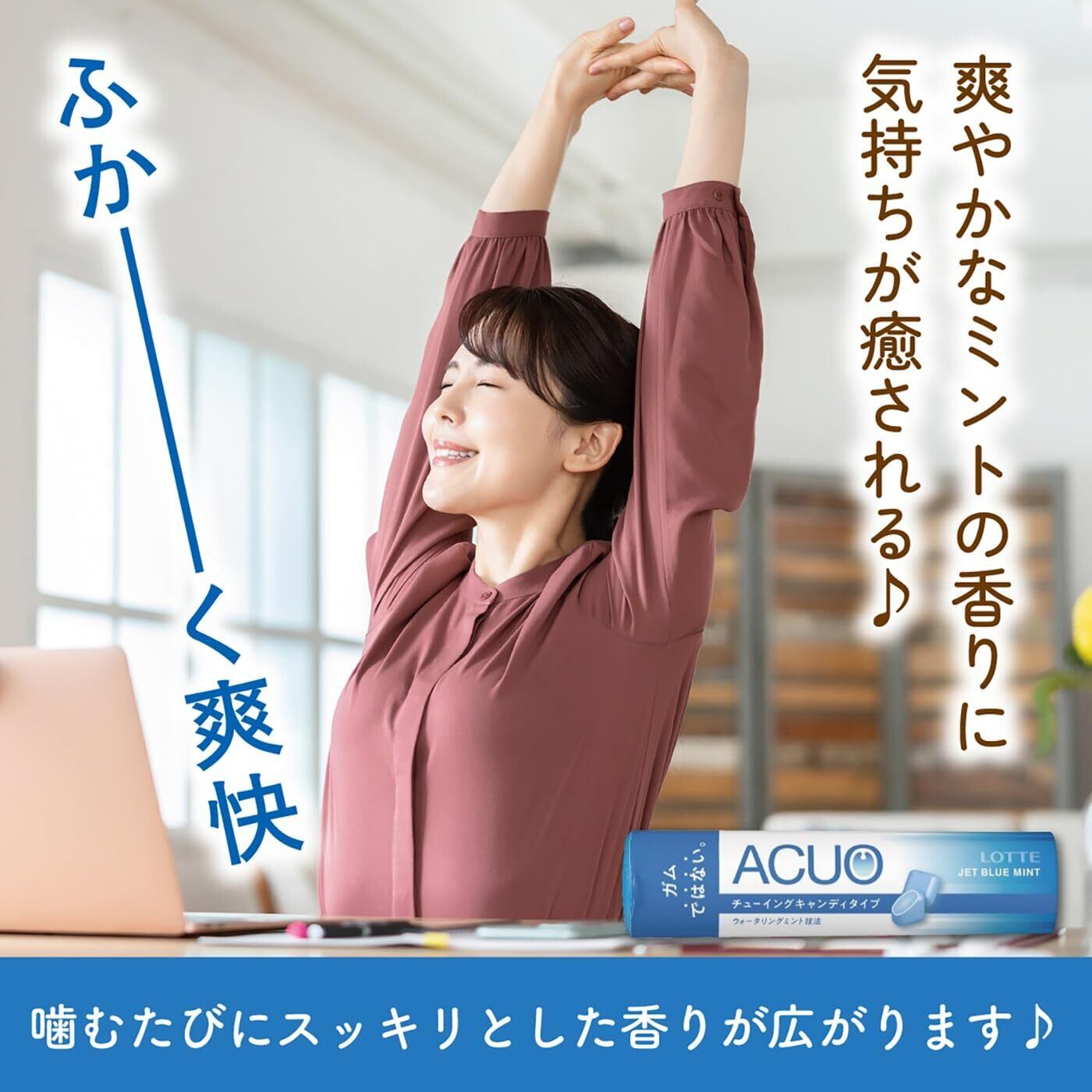 ACUOからチューイングキャンディタイプが新登場!噛むと口の中に爽快感が駆け抜け、即座に息と気分のスッキリを実現してくれます。ガムと同様、本品もウォータリングミント製法を採用。清潔感あふれるデザイン、携帯性に優れた容器も魅力的です。気軽にNEW ACUOを生活に取り入れ、みずみずしい気持ちで自分らしく日々をお楽しみください。