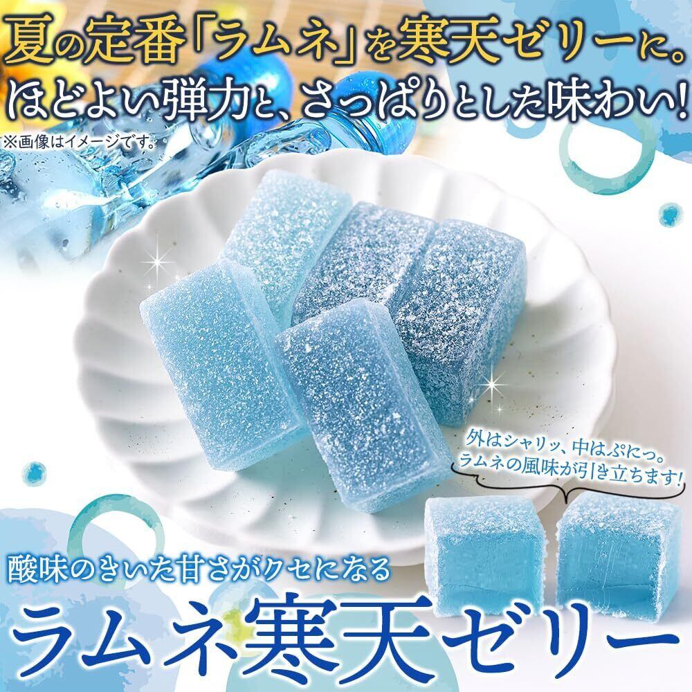 【夏の定番「ラムネ」を寒天ゼリーに】ほどよい弾力と、さっぱりとした味わい! 外はシャリッ、中はぷにっ。 ラムネの風味が引き立ちます!