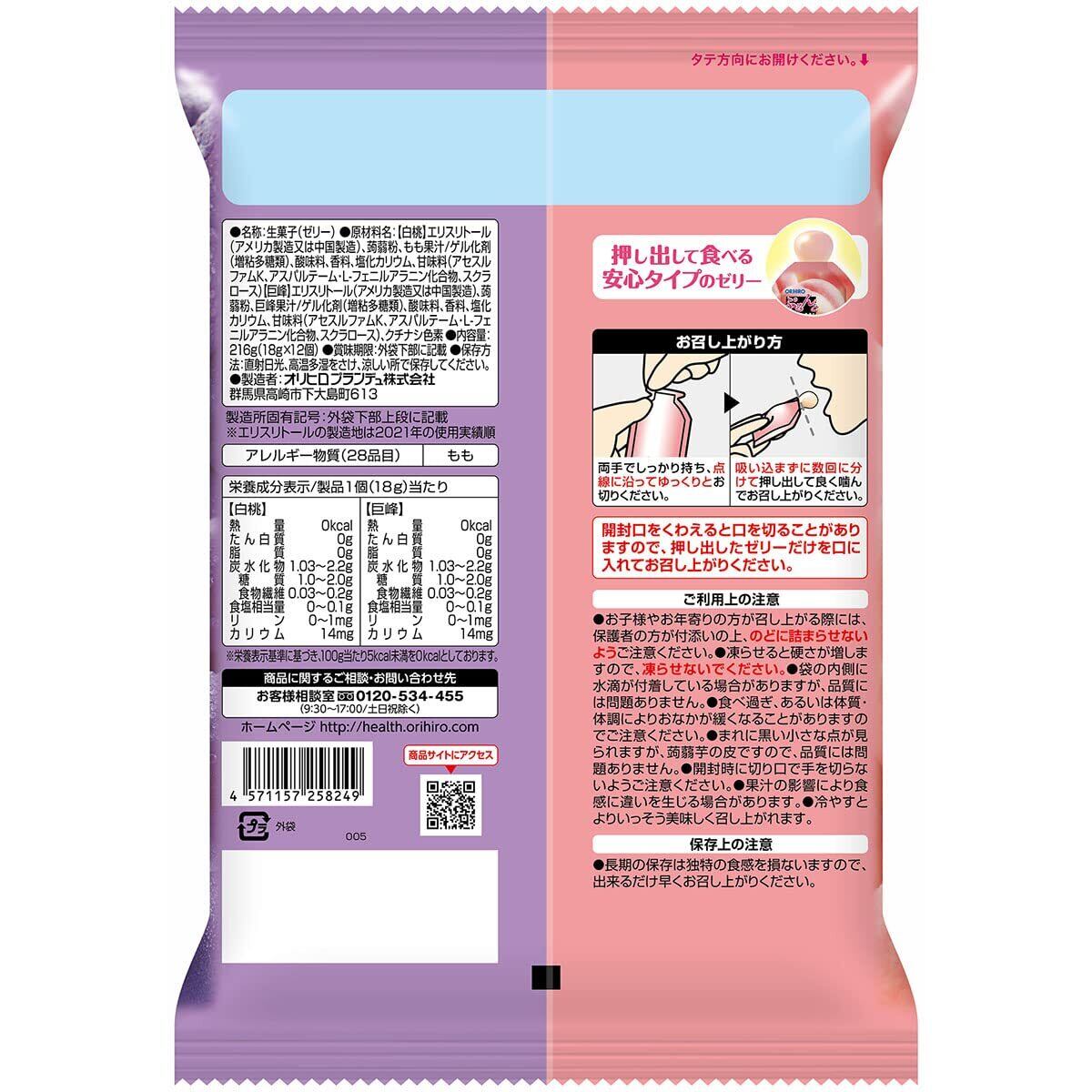 オリヒロプランデュ ぷるんと蒟蒻ゼリーパウチ カロリーゼロ白桃+巨峰 12個入×6袋