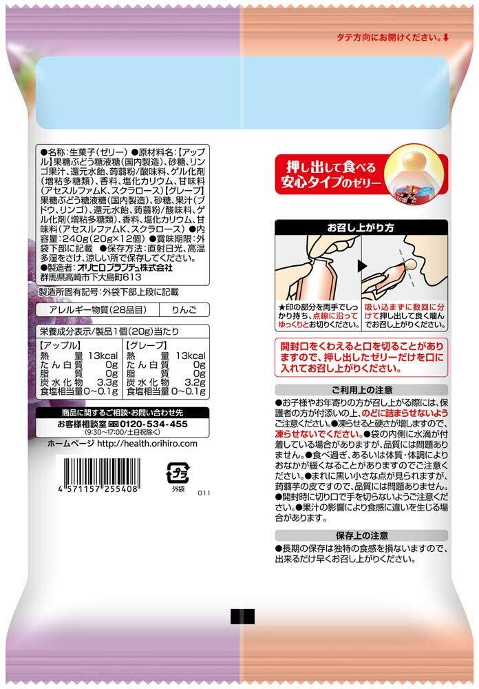オリヒロプランデュ ぷるんと蒟蒻ゼリーパウチ アップル+グレープ 20gx12個×6袋