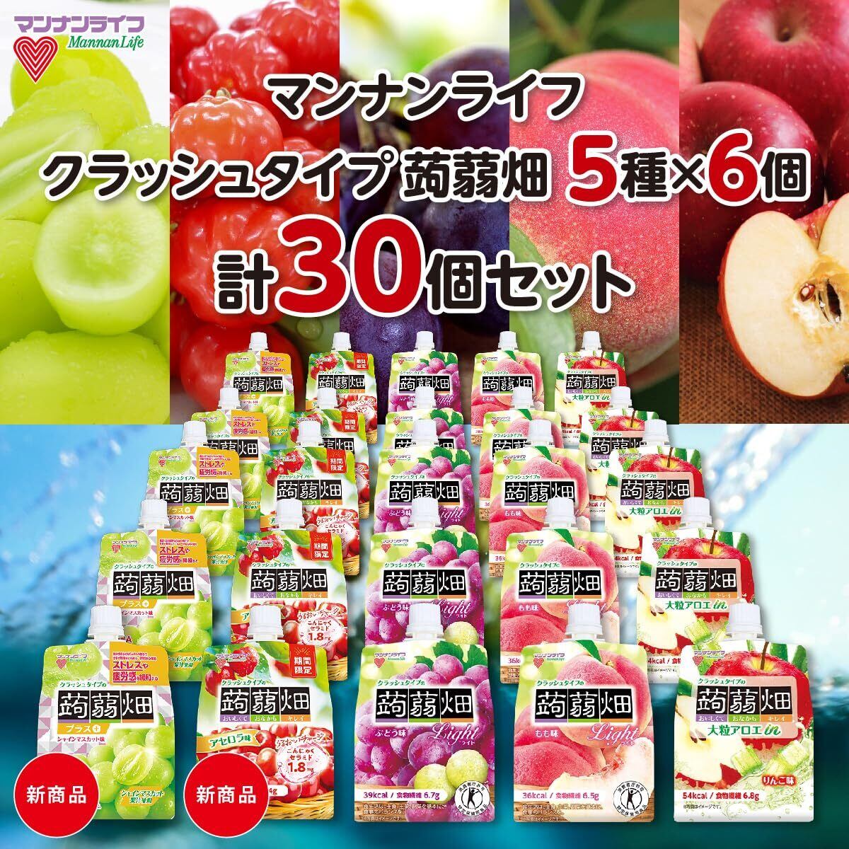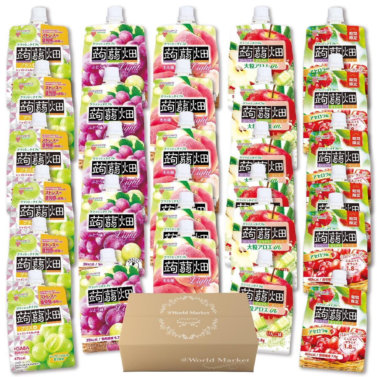 マンナンライフ 蒟蒻畑 蒟蒻ゼリー こんにゃくゼリー クラッシュタイプの蒟蒻畑 計30個セット 5種 × 各種6個 アソート (ぶどう味 もも味 りんご味 シャインマスカット味 アセロラ味) 計30個セット @World Market オリジナルBOX付き ギフト プレゼント お中元