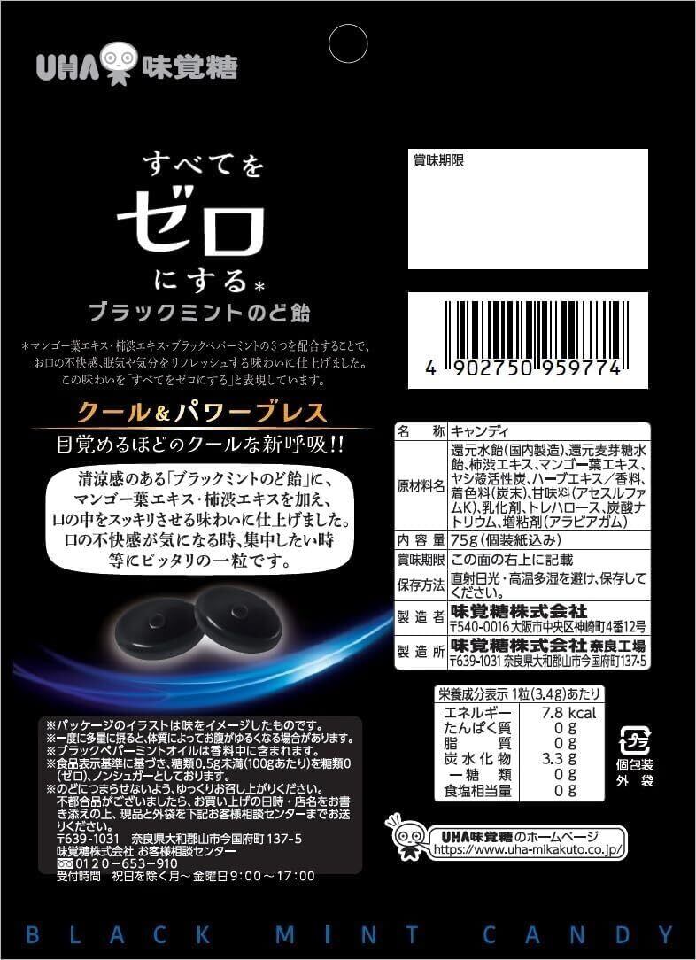 UHA味覚糖 ノンシュガー ブラックミントのど飴 75g×4個