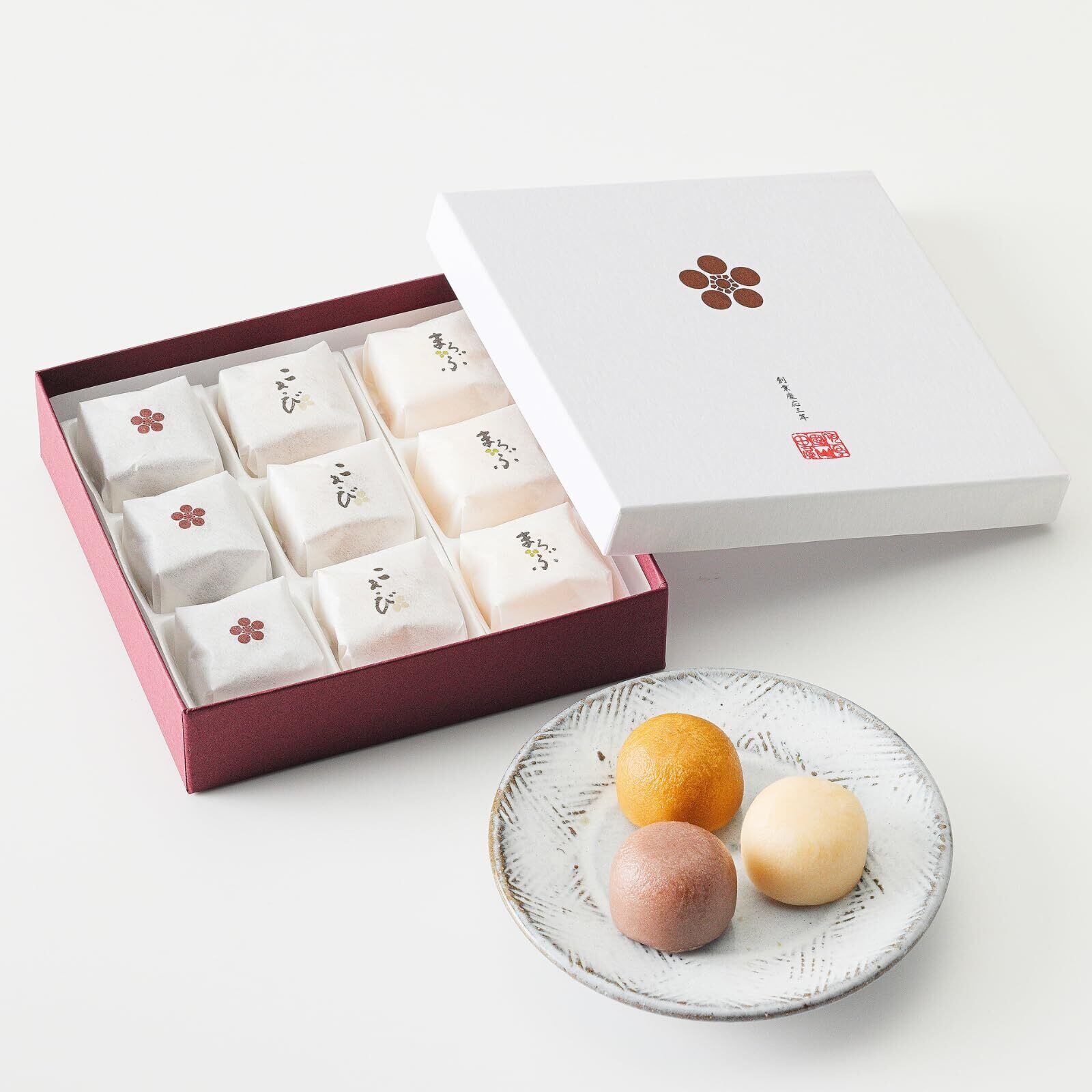 【包装内容】山田屋まんじゅう3個、こきび3個、まろぶ3個【内容量】約290g【外箱サイズ】145mm×145m×36mm(縦×横×高さ)