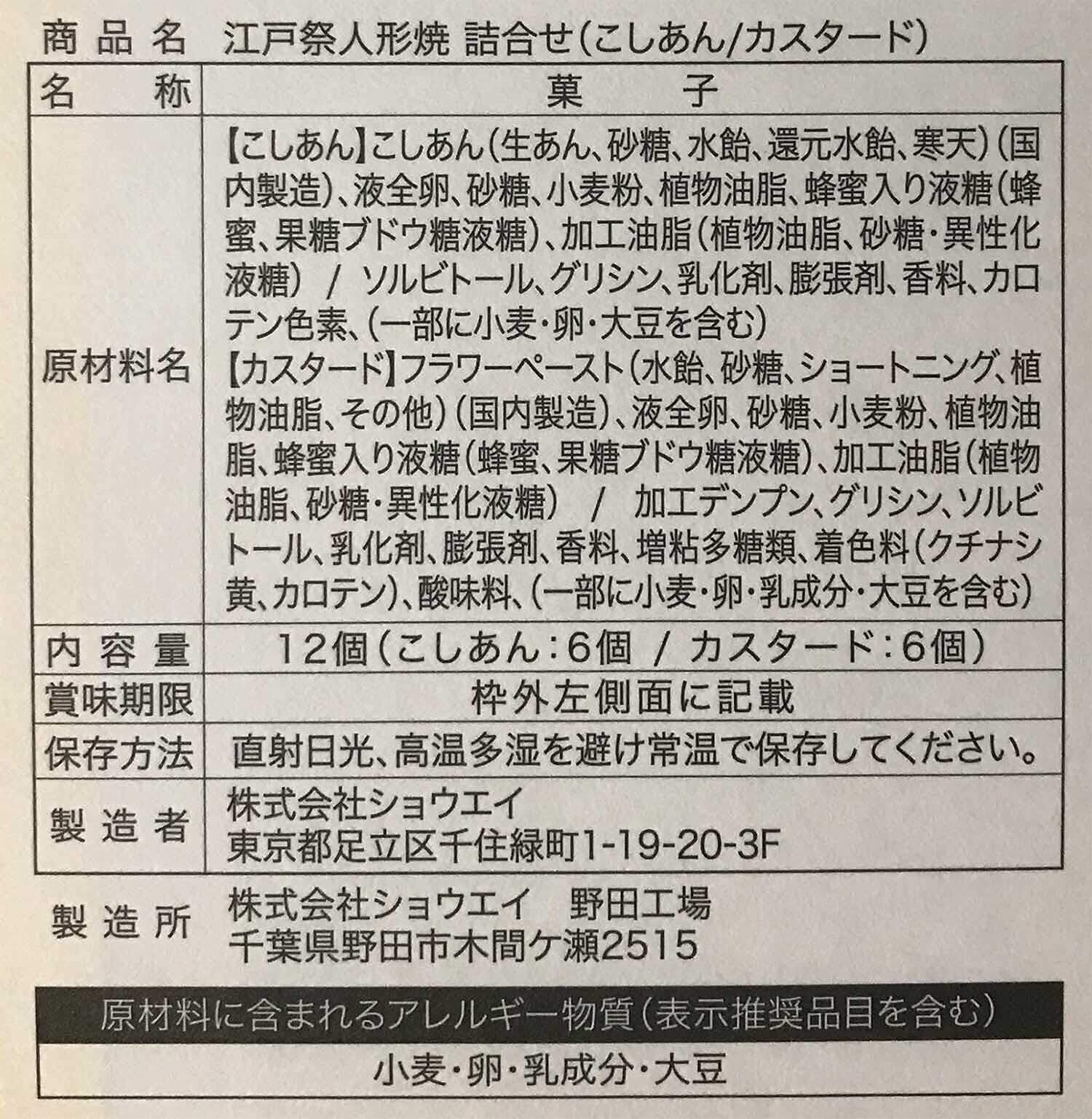 ショウエイ 江戸祭 人形焼 ( こしあん カスタード ) 東京土産 和菓子 お土産に (12個入)
