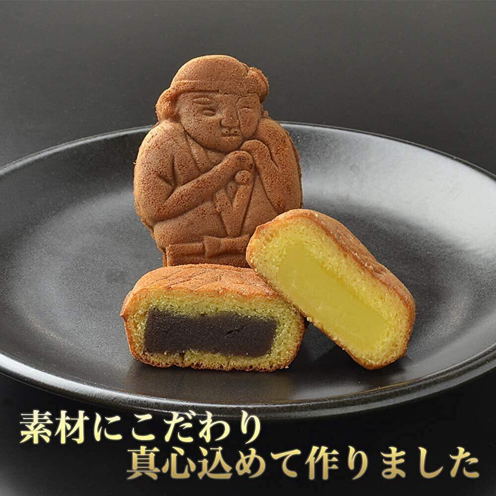 しっとりとしたカステラ風味の生地をお召し上りいただき、オリジナルの餡となめらかなカスタードを味わってください。