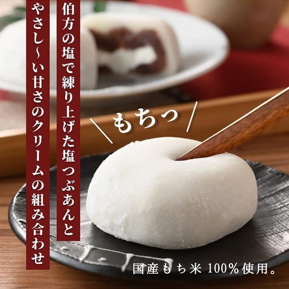 ※こちらは冷凍の商品です。汚損・破損の恐れがありますので、のし紙・包装紙での包装はいたしかねます。ご了承ください。 SNSなどの口コミでも大人気の「伯方の塩 純生入り大福」。塩かどのない、まろやかな塩味の中にほんのりとした甘みが広がる伯方の塩を使用し、こだわりのクリーム大福に仕上げました。伯方の塩を使って練り上げた塩つぶあんと、なめらかな純生入り生クリームが絶妙なバランスで溶け合い、口いっぱいに優しい美味しさが広がります。外側のお餅には国産もち米100%を使用し、水は西日本最高峰・石鎚山の伏流水「西条うちぬき水」。名水百選にも選ばれた名水を使うことで、お餅のもちっとした食感と上品な味わいを実現しました。ほんのりとした塩味がアクセントのクリーム大福は、SNSの口コミでも高評価を集める話題の商品です。自宅用にはもちろん、手土産や贈り物にもおすすめの逸品。ぜひ一度、その美味しさをご体感ください。 ご自宅用はもちろんのこと、幅広い年齢層の方へのギフトや手土産にも最適。内祝い、お供え、ご挨拶、お見舞い、入学祝、卒業祝、お祝い、御礼、お返し、引き出物、引菓子、御中元やサマーギフト、お歳暮、バレンタインギフト、ホワイトデーギフト、母の日ギフト、父の日ギフト、帰省のお土産、敬老の日の贈り物など、さまざまなシーンで大変喜ばれています。