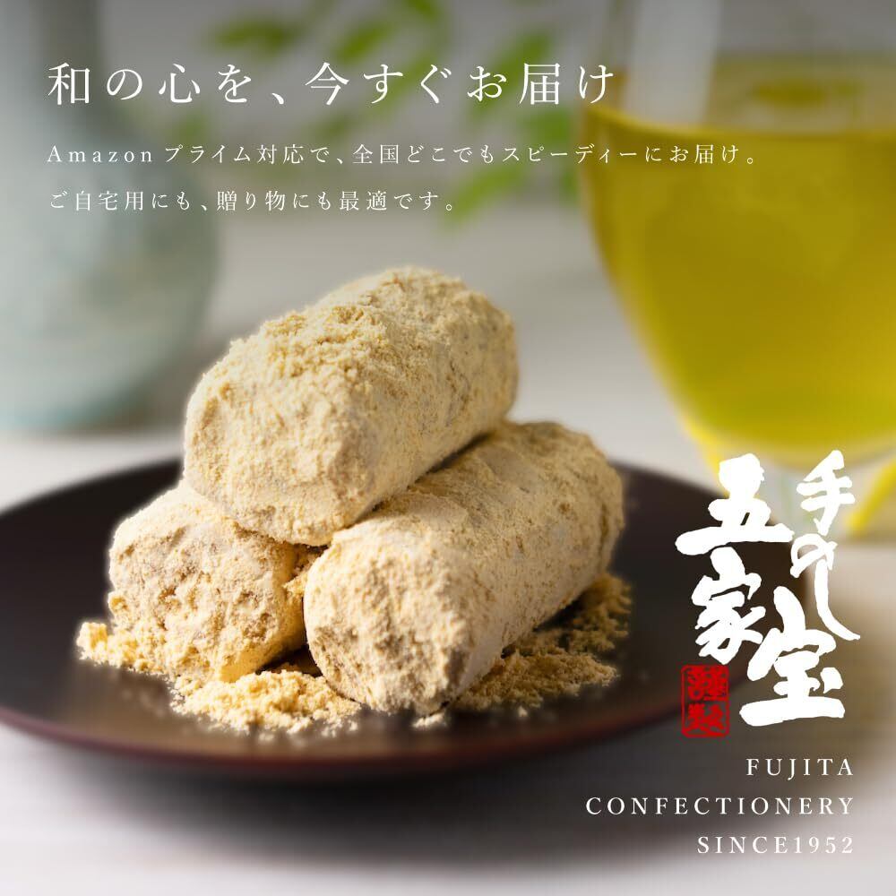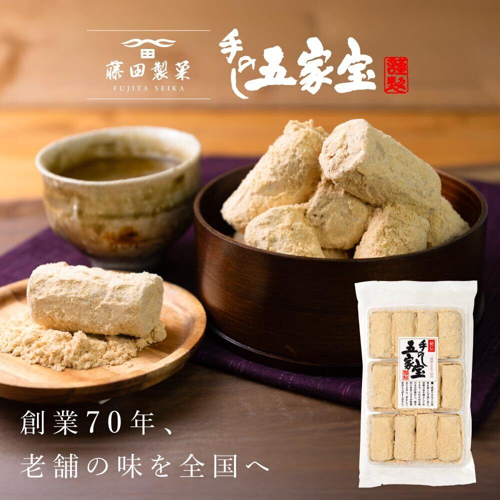 伝統的な和菓子「五家宝(ごかぼう)」を手作りで丁寧に仕上げた藤田製菓の逸品です。もち米種を使用し、きな粉をまぶした優しい甘さの郷土菓子で、水飴と砂糖の程よい甘みと、小麦パフのサクサクした食感が特徴です。ご家族でのおやつや来客時のお茶菓子として最適です。常温保存可能で、日本の伝統的な味わいを大切に守り続けている商品です。原材料には大豆を含んでおりますので、アレルギーをお持ちの方はご注意ください。職人の技が光る本種ならではの味と食感をお楽しみください。