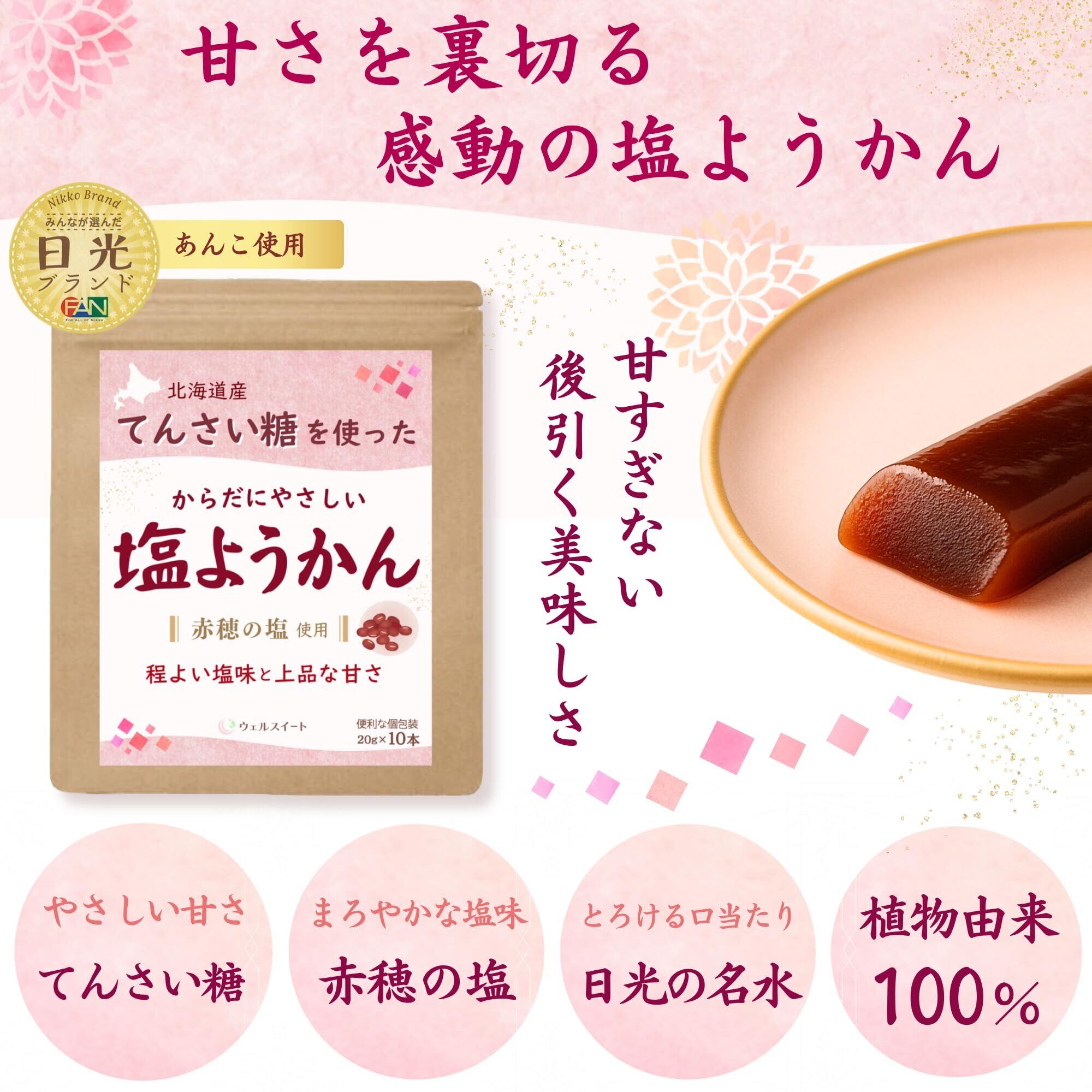 ウェルスイート 塩ようかん 羊羹 北海道小豆100%×てんさい糖 スティック個包装 ミニ ようかん 20g×10本