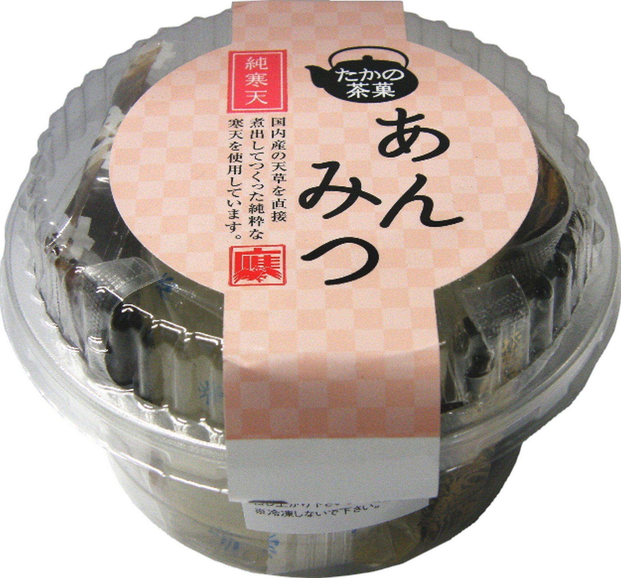 原材料:「寒天」天草、醸造酢「みつ」砂糖、粗糖、水飴「あん」砂糖、小豆、水飴