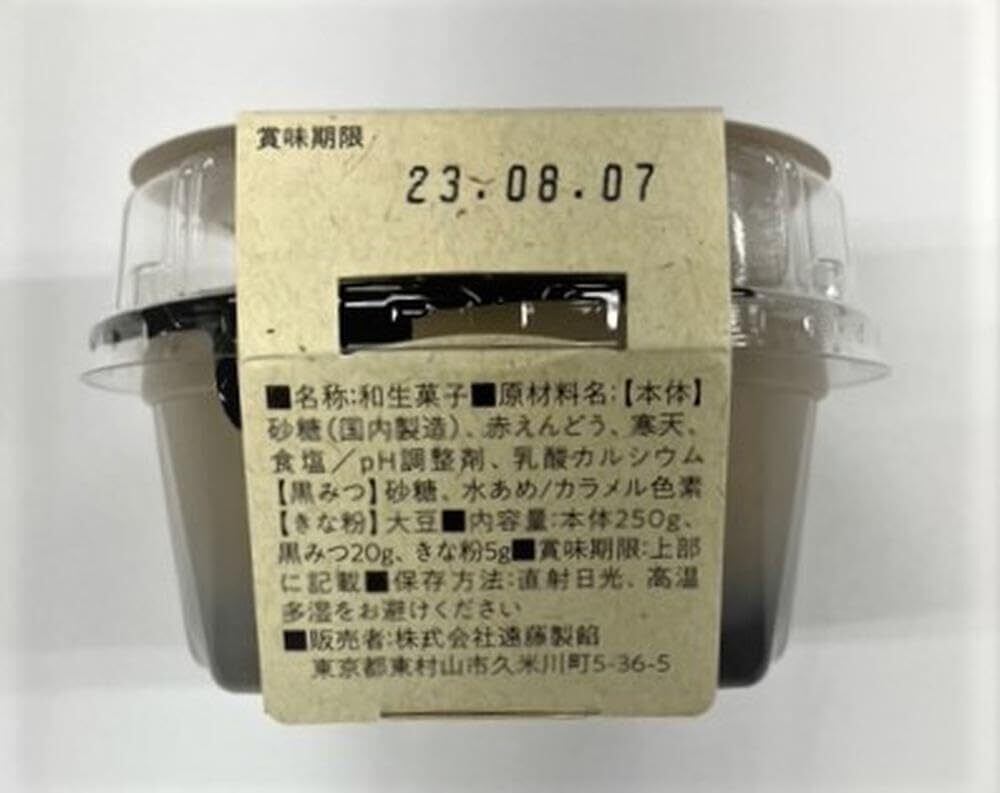 砂糖(国内製造)、黒蜜(砂糖、水あめ)、赤えんどう、きな粉、寒天、食塩/pH調整剤、カラメル色素、乳酸カルシウム
