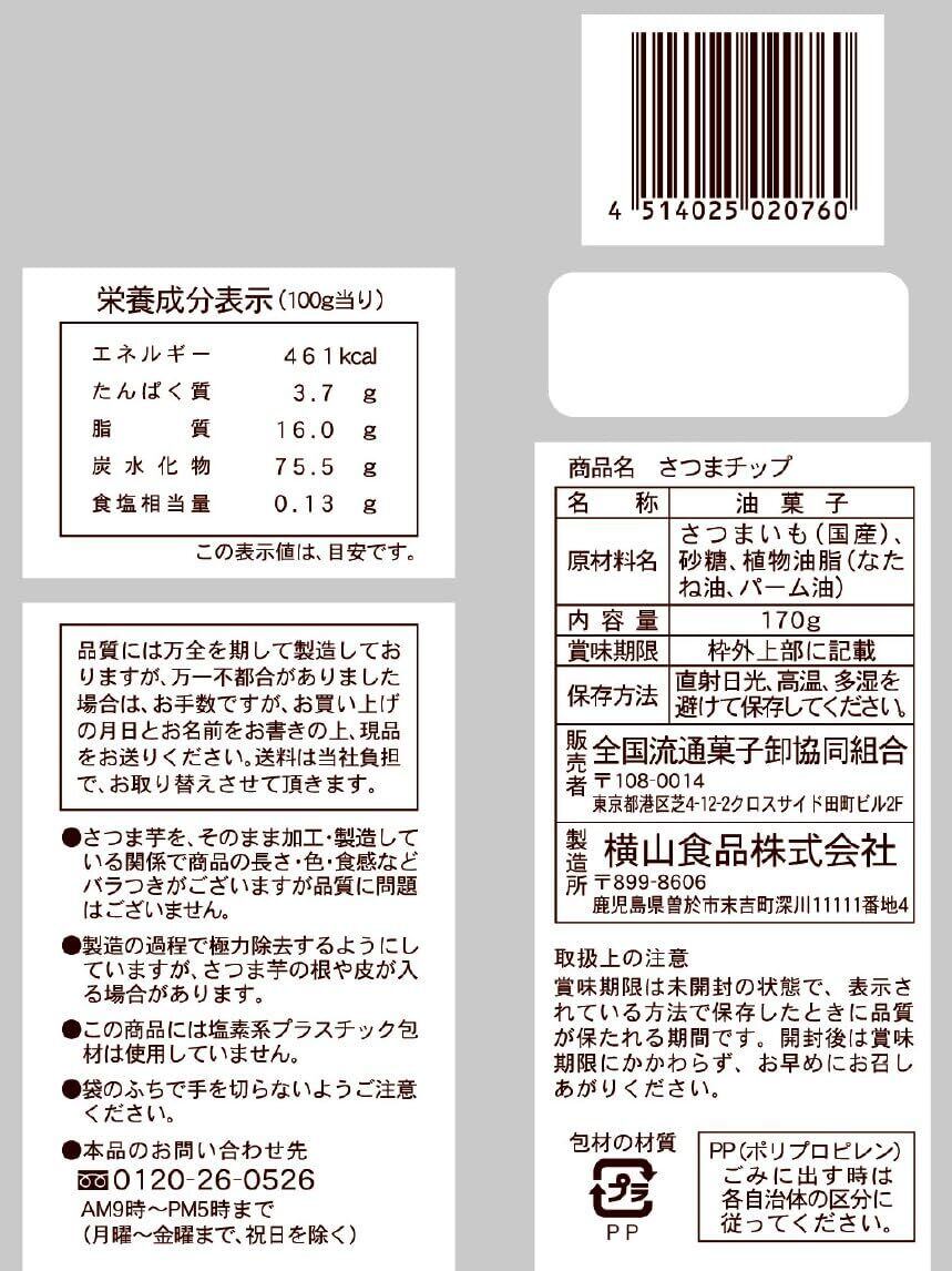 原材料:さつま芋(国産)、砂糖、植物油脂(菜種油、パーム油)