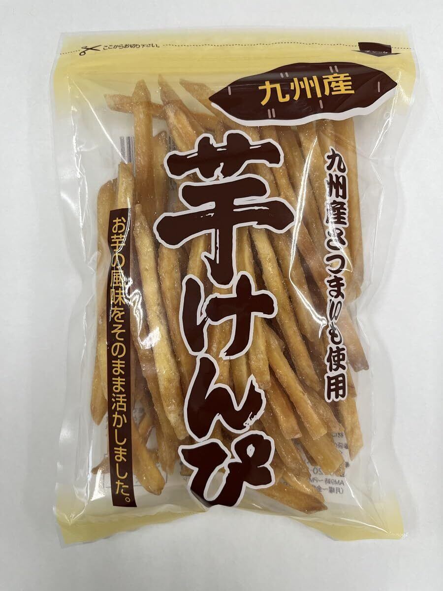 さつま芋の産地である九州産さつま芋(コガネセンガン)を使用し、棒状にカットした後、油で揚げて砂糖蜜に絡めた、さつま芋のお菓子です。使用しておりますコガネセンガンという品種のさつま芋は芋けんぴに最適でお砂糖との相性もとてもいいです。昔ながらの製法でシンプルな原材料を使用して製造いたしております。