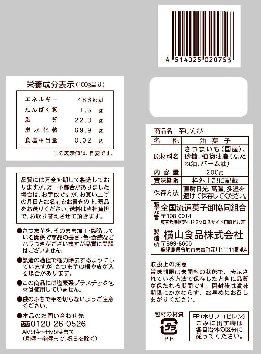原材料:さつま芋(国産)、砂糖、植物油脂(菜種油、パーム油)
