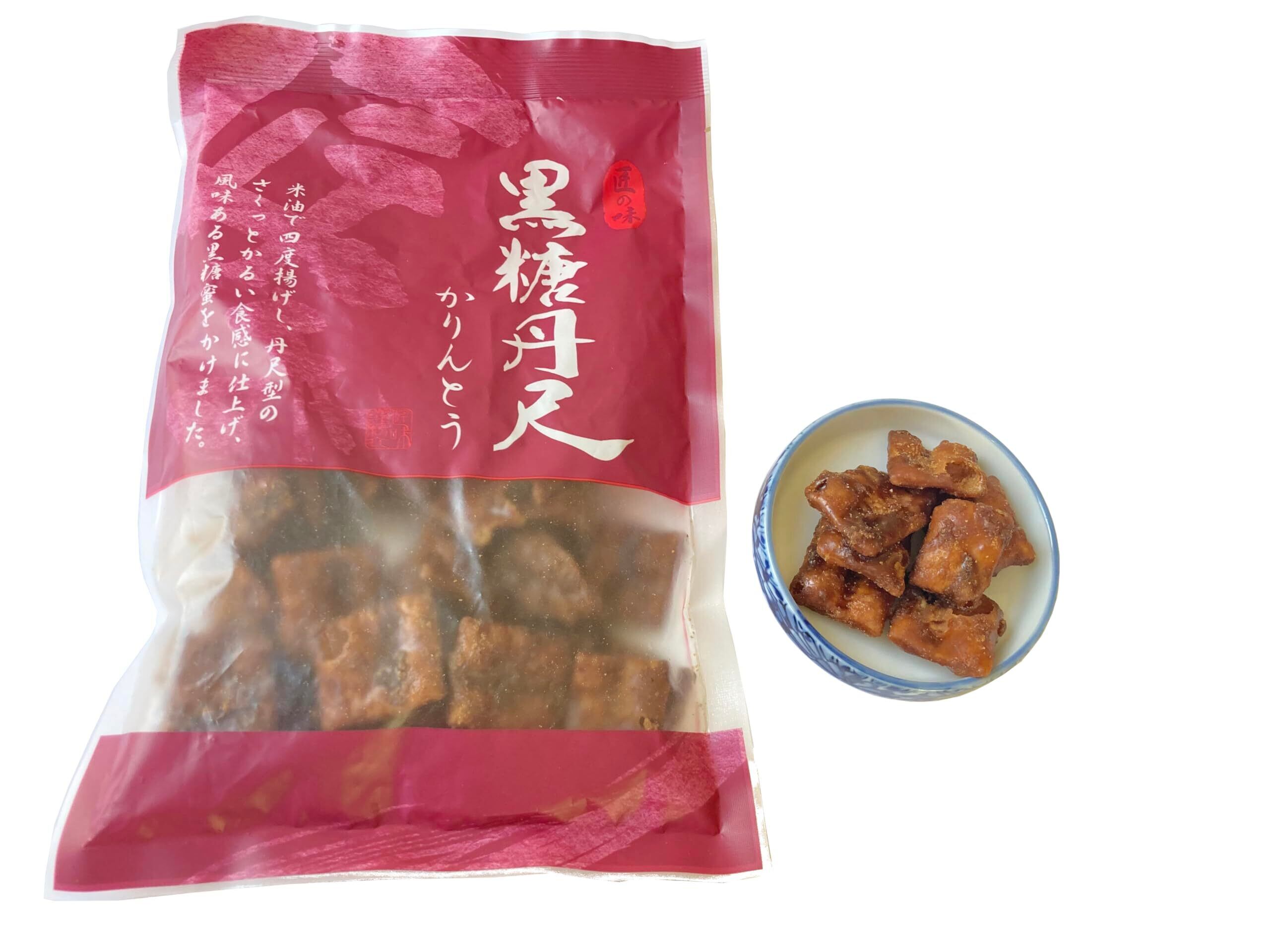 商品紹介:米油で四度揚げし、丹沢型のさくっとかるい食感に仕上げ、風味ある黒糖蜜をかけました。