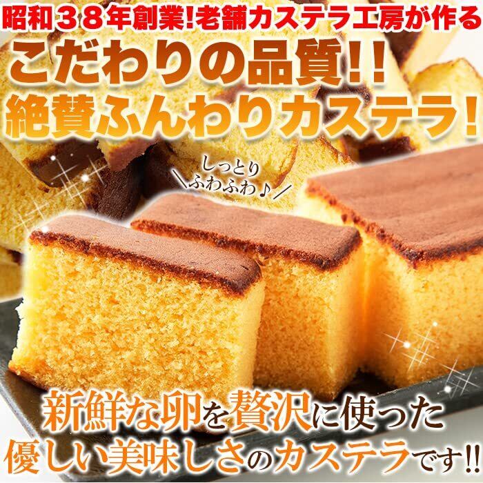 【本場長崎の老舗カステラ工房が製造】 職人さんがその日の天候と素材の状態を吟味して絶妙な調整をしながら丁寧に焼き上げているため、 キメ細やかな生地とふんわりした食感が味わえます。