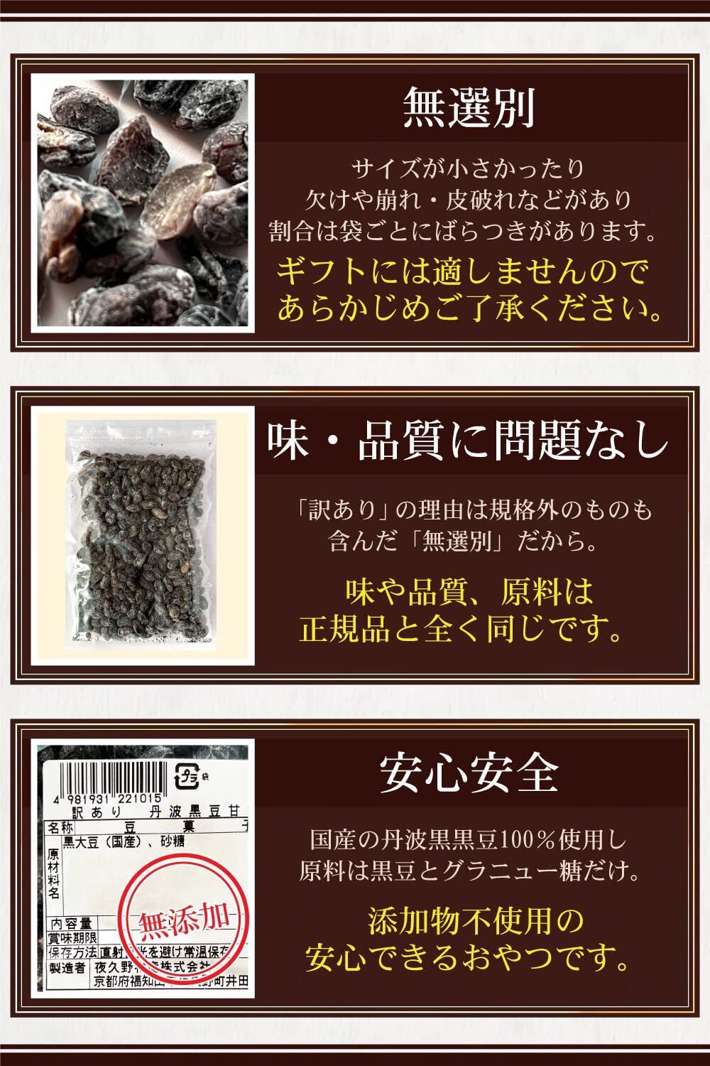 夜久野物産 訳あり 無選別 丹波黒豆甘納豆 420g 徳用 大袋 甘さひかえめ 大粒2L しぼり甘納豆 もちもち しぼり黒豆 和菓子 豆菓子 お茶請け