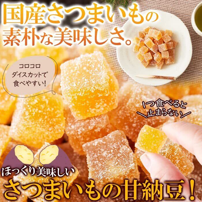 【コロコロダイスカットで食べやすい!】甘さの中にも、さつま芋の風味、旨味を感じていただけます。甘くてホクホクおいしいお芋の甘納豆です。