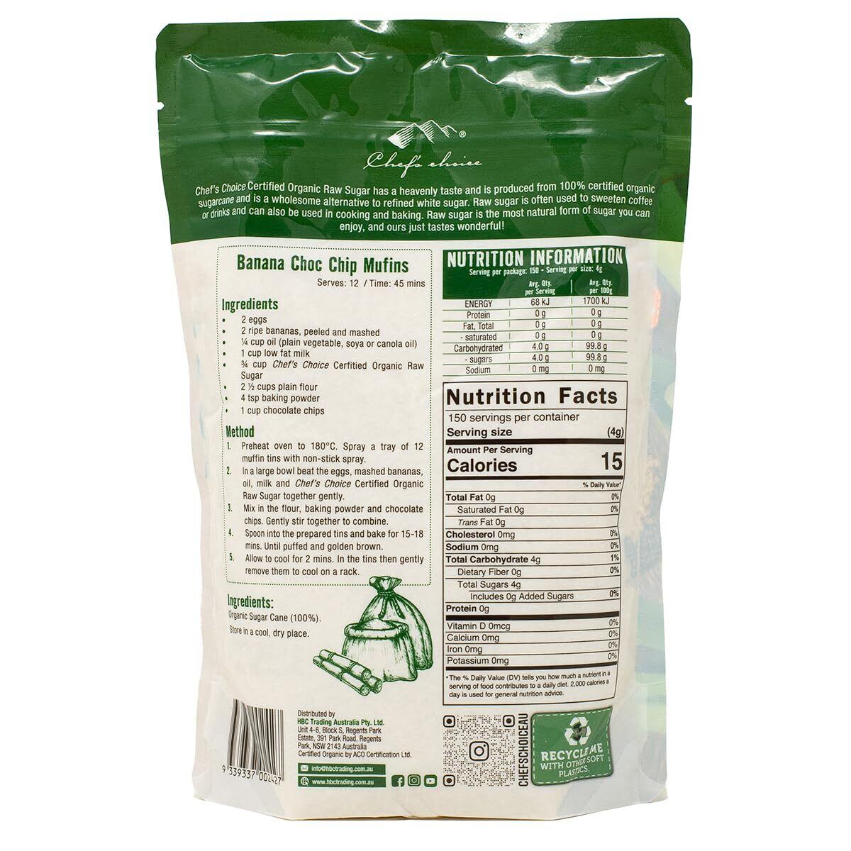 シェフズチョイス オーガニック ローシュガー 600g Organic Raw Sugar 未精製 未漂白 無添加 100%ナチュラル