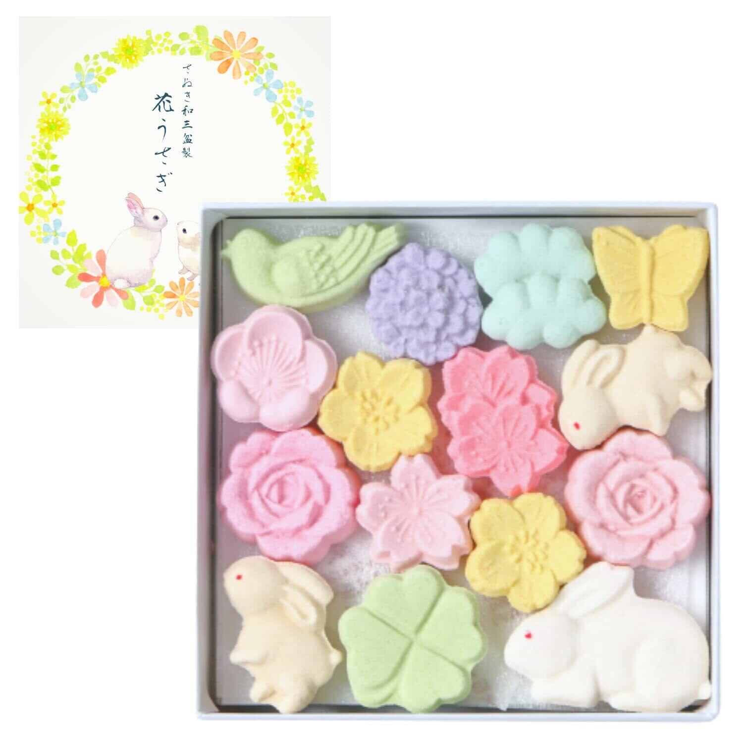 【花うさぎ】花とうさぎ。春の装いを感じられる可愛いセットです。ご挨拶やプチギフト、手土産やお祝い事に。