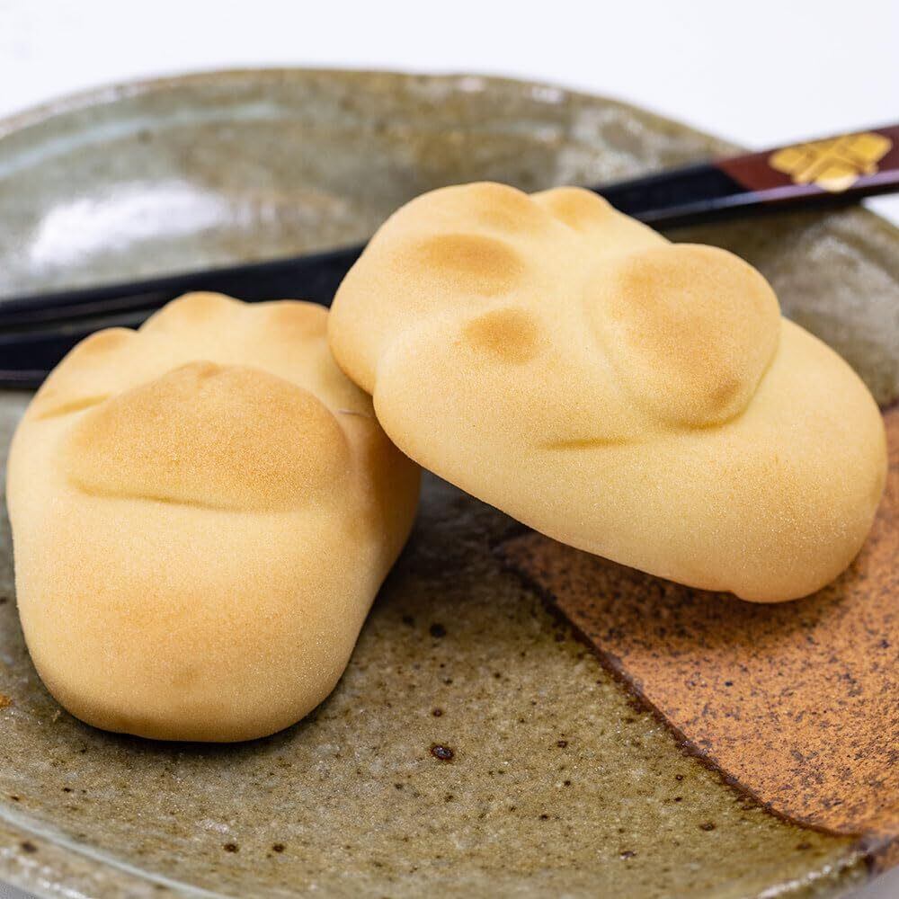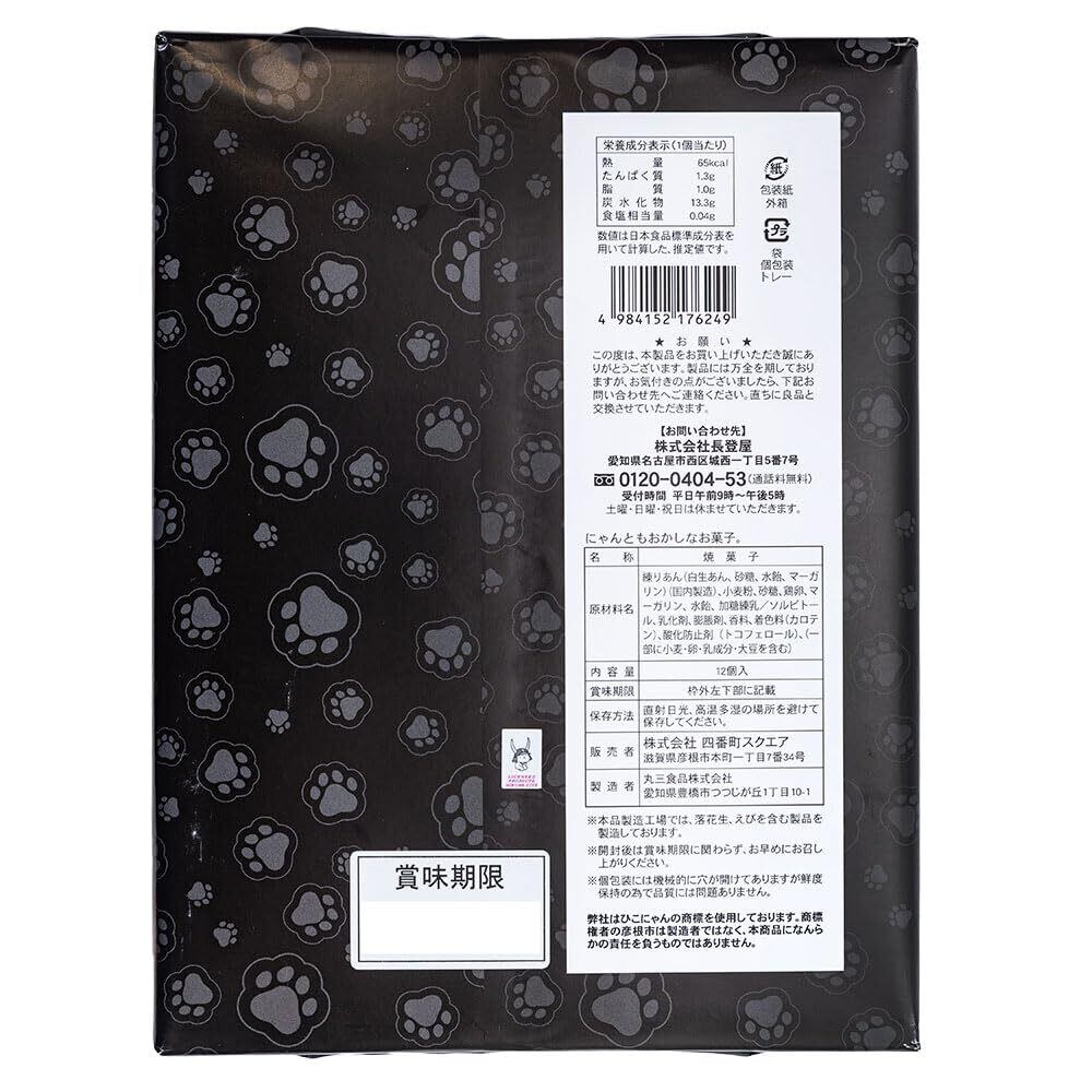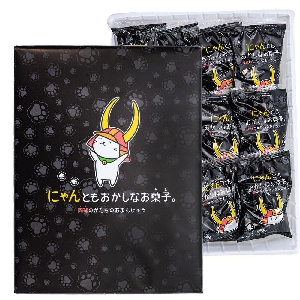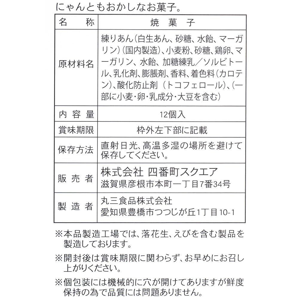 滋賀県彦根市の人気キャラクター「ひこにゃん」デザインパッケージが可愛い 肉球のかたちをしたユニークなおまんじゅう「にゃんともおかしなお菓子 12個入り」です。