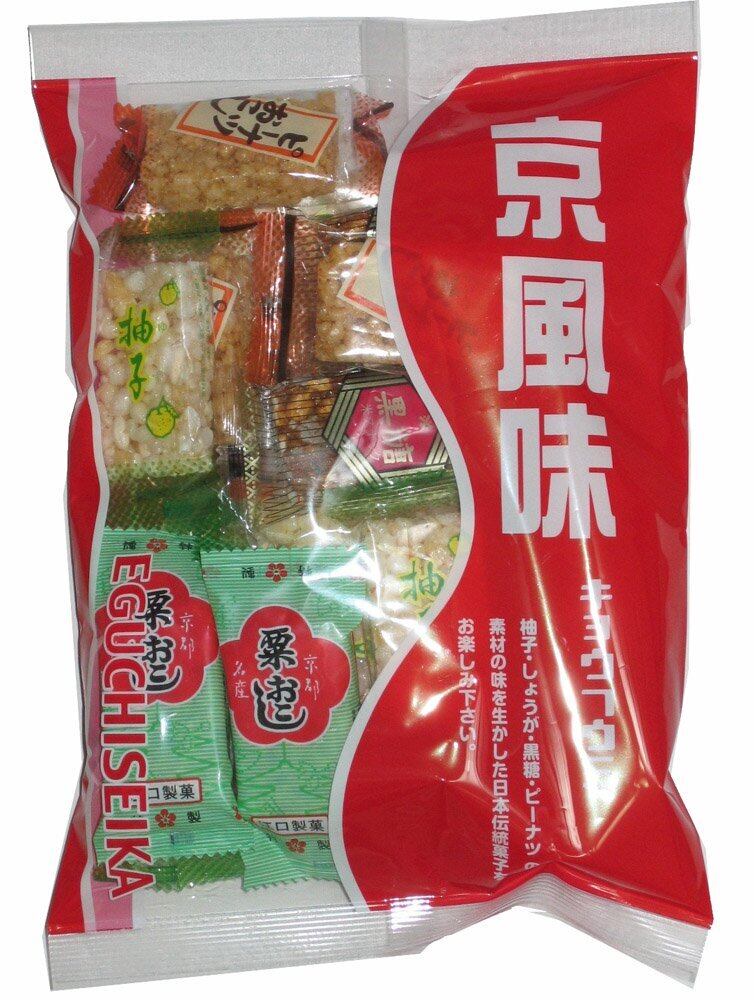 原材料:糖類(砂糖、水飴、黒糖、加工黒糖)、米(国産)、小麦粉、澱粉、ピーナツバター、生姜、柚子ペースト、ごま、落花生、植物油脂、カラメル色素、食塩、膨脹剤