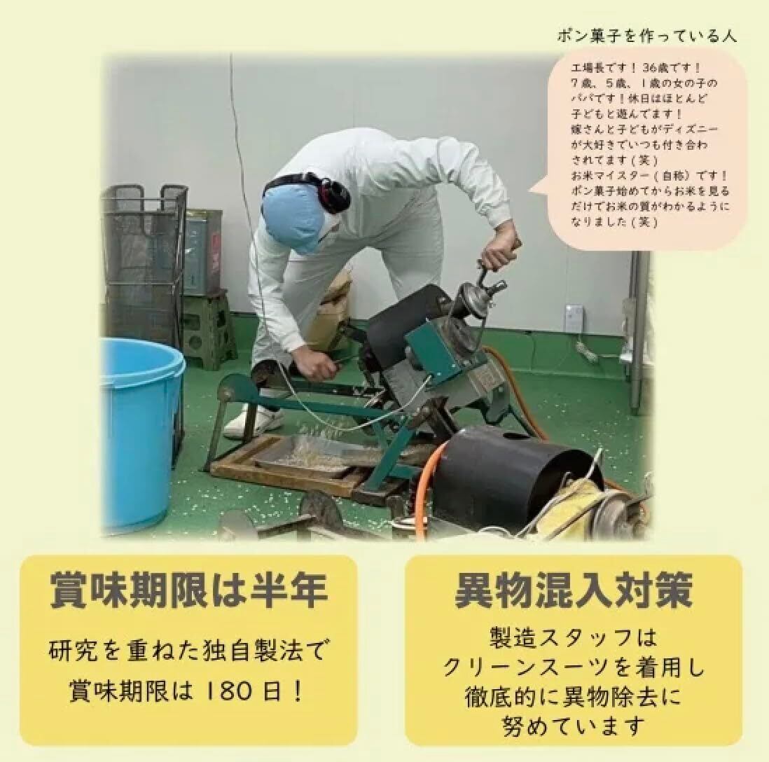 原材料名:米(大分県大分県玖珠町),はちみつ(国産),麦芽水飴(さつまいも でん粉(さつまいも(鹿児島県産))),米油(米ぬか(国産)),塩(沖縄県宮古島)