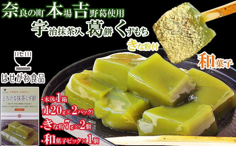 奈良の町 本場 吉野葛使用 宇治抹茶 葛餅 1箱 (120g×2袋) くず餅 お取り寄せ 人気 和菓子 くずもち きな粉付き 母の日ギフト 父の日プレゼント はせがわ食品