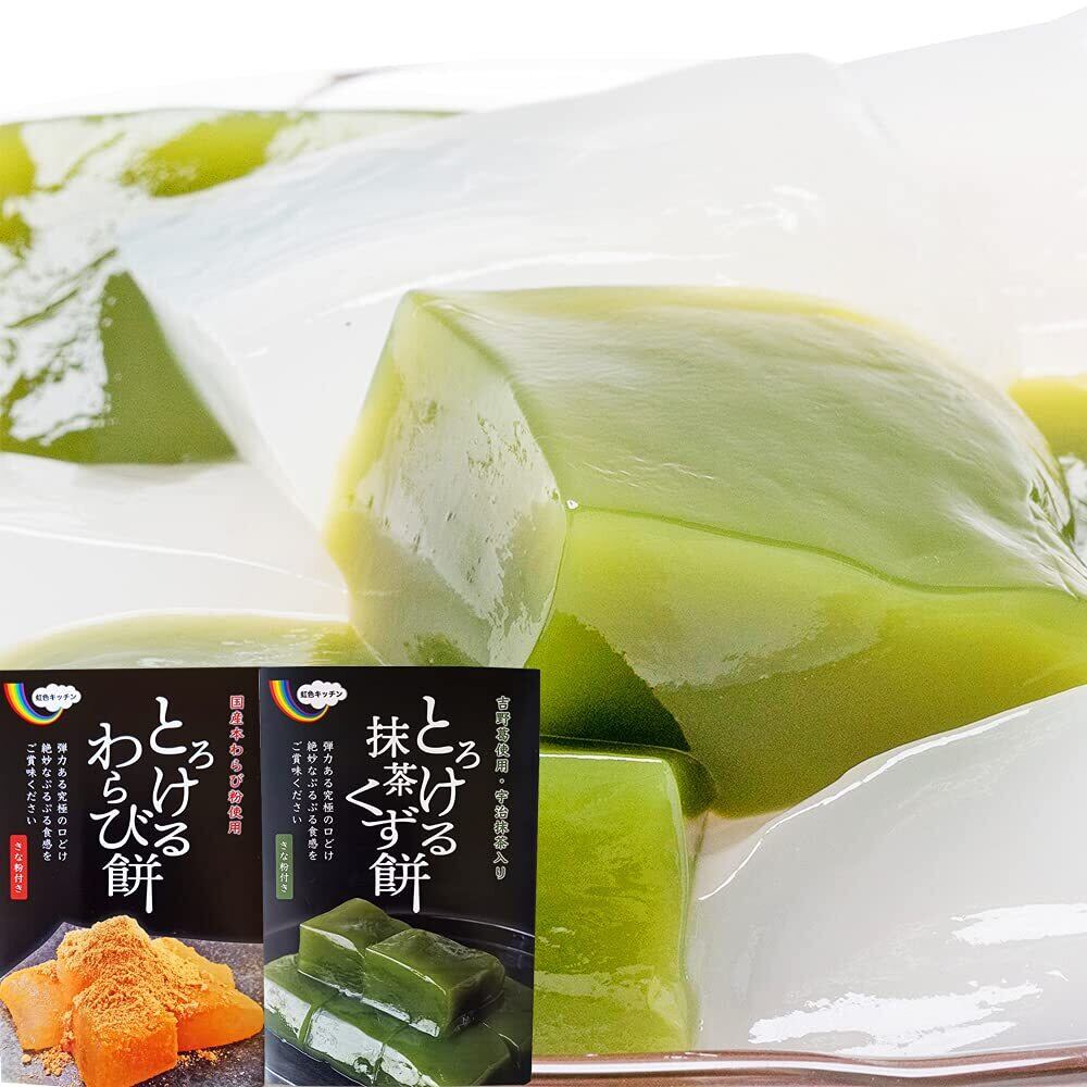 とろける 本わらび餅1箱(120g×2)&宇治抹茶葛餅1箱(120g×2) 吉野本葛使用 くず餅 国産 和菓子 ギフト きな粉付き 虹色キッチン