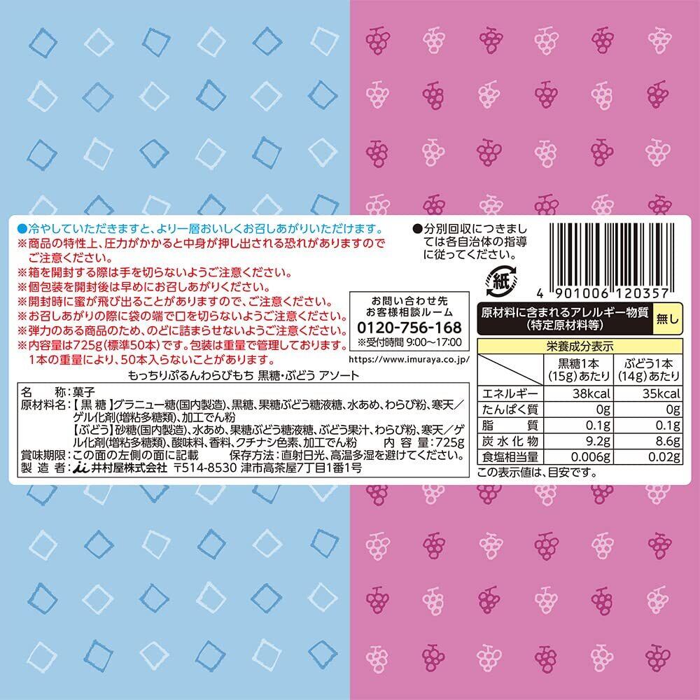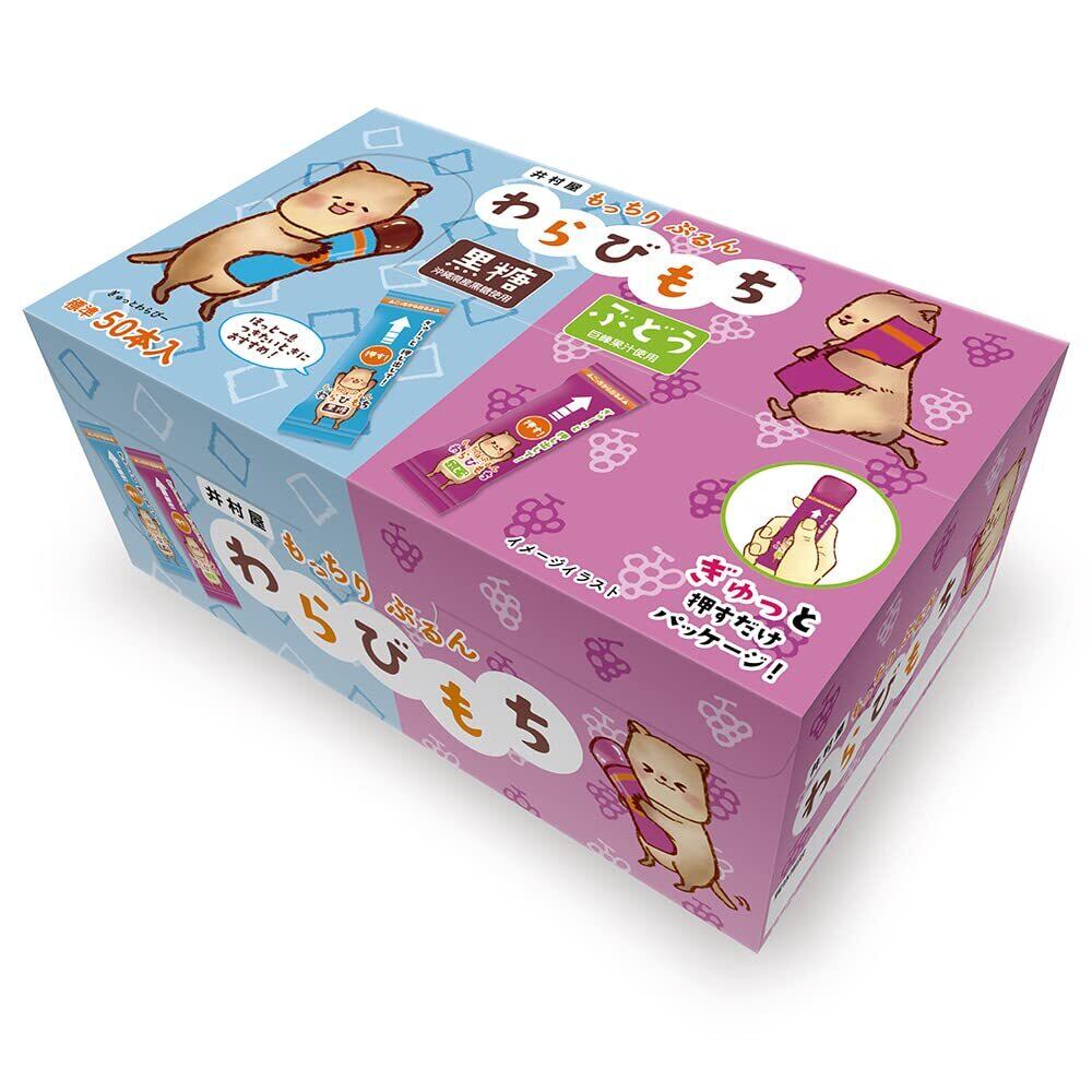 井村屋 もっちりぷるんわらびもち黒糖・ぶどう アソート(50本入) 【スティックタイプ】【置き菓子】【オフィス】【リビング】【業務用】【大容量】