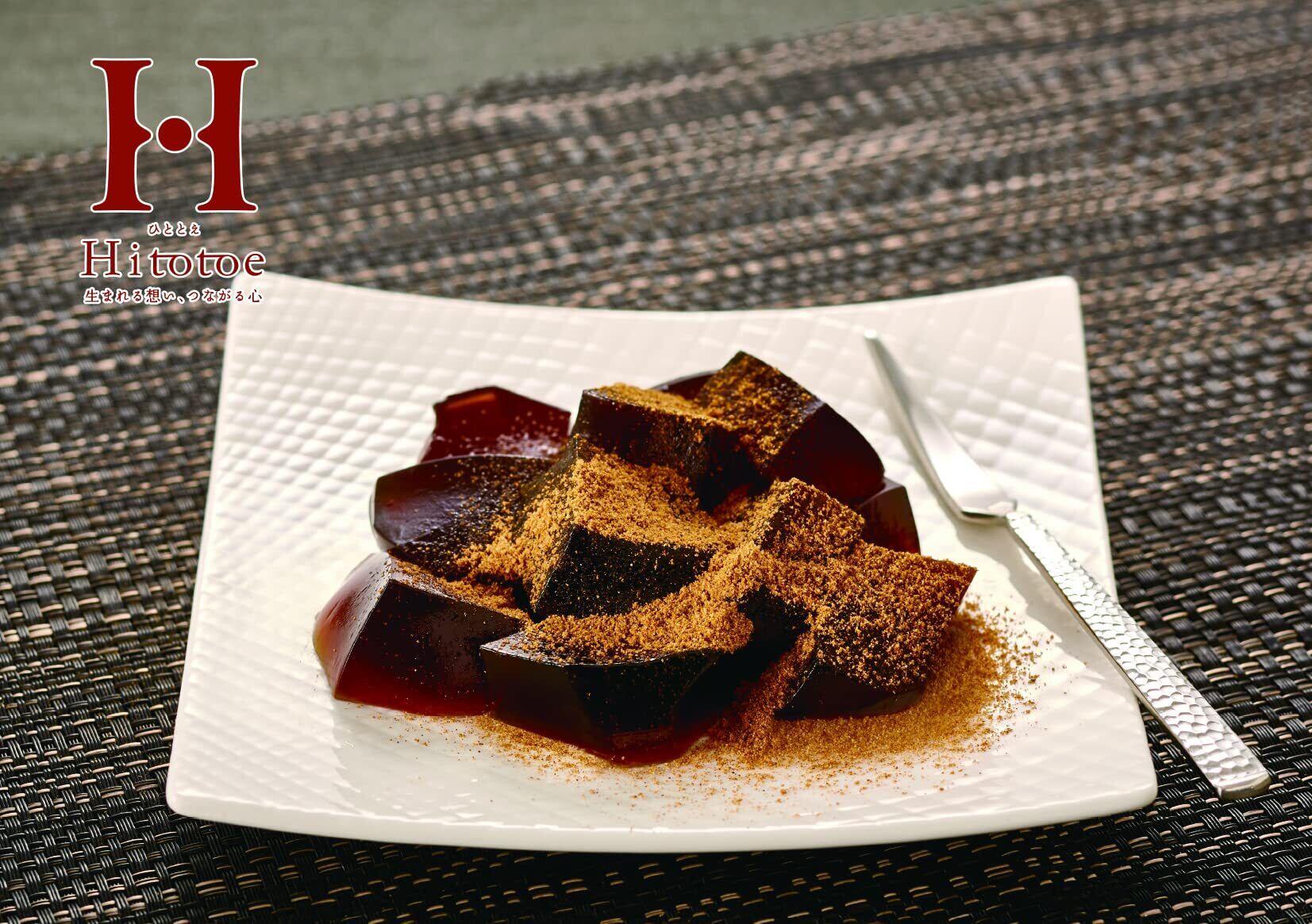 沖縄県産黒糖入り黒蜜を加えたわらび餅に、6つの黒の恵みの「黒米」「黒豆」「黒ゴマ」「黒松の実」「黒かりん」と、大豆を深く炒った香り豊かなきな粉を合わせた黒きな粉を添えました。もっちり食感の黒わらび餅と風味豊かな黒きな粉が織り成す奥深い、絶妙な味わいをお愉しみください。