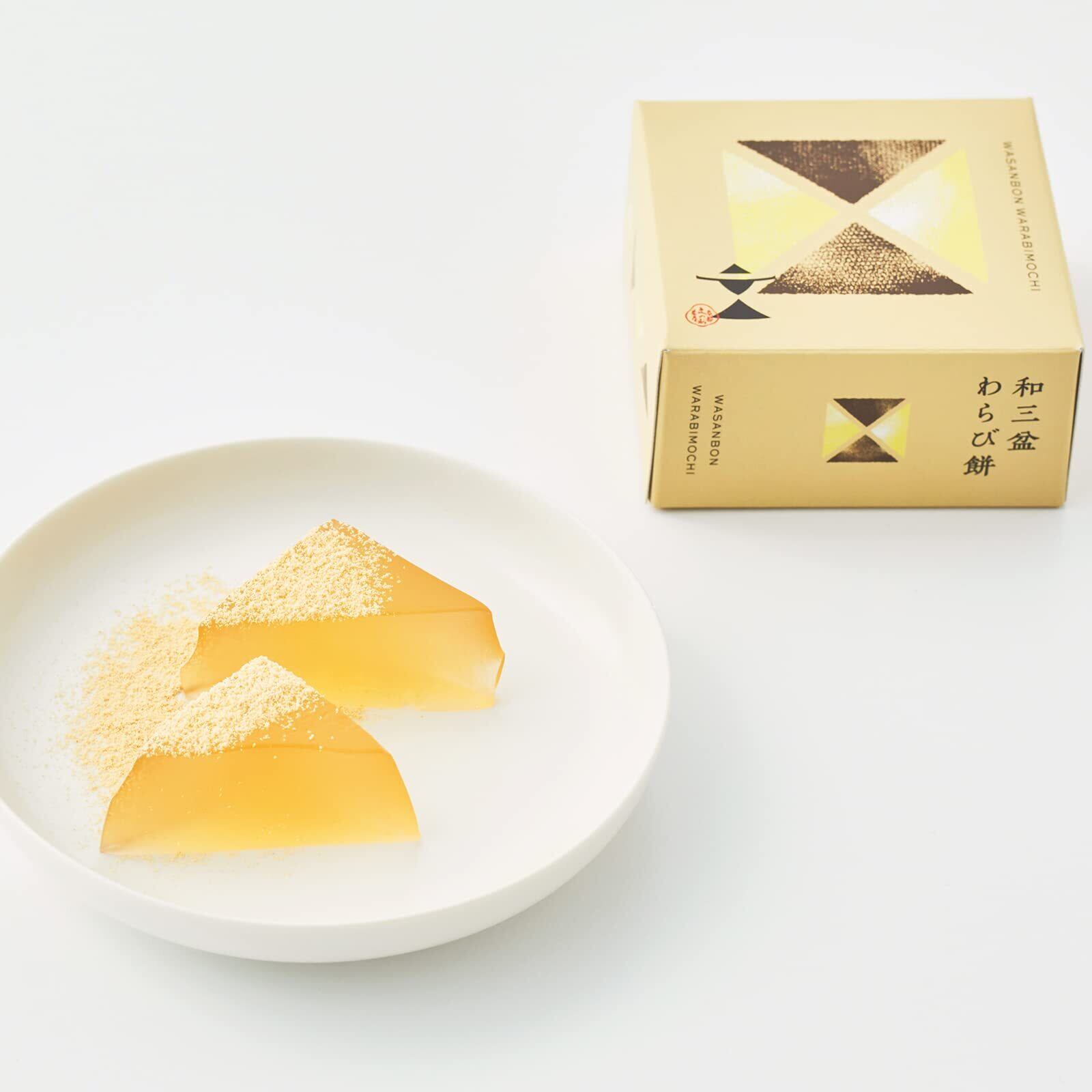 すっきりとした甘みが特徴の和三盆糖と三温糖をブレンドし、風味・色・食感にこだわった「和三盆わらび餅」、宇治のほうじ茶を香ばしく仕上げて練り込んだ「ほうじ茶わらび餅」、沖縄波照間産の黒糖を使用し深いコクのある甘さに仕上げた「黒糖わらび餅」の3種をセットにした詰合せ。三角の穴から個箱のカラーがのぞくオリジナルパッケージに入れてお届けします。気軽なおもたせにも最適です。
