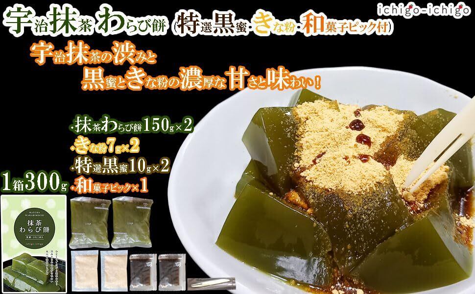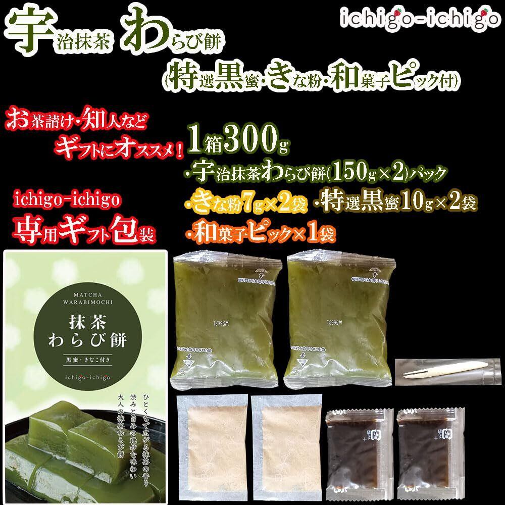 ichigo-ichigo 宇治抹茶 わらび餅 ギフト 1箱 300g (150g×2・きな粉×2・黒蜜×2) 和菓子 国産わらび餅粉 わらびもち 業務用 母の日ギフト 父の日 プレゼント