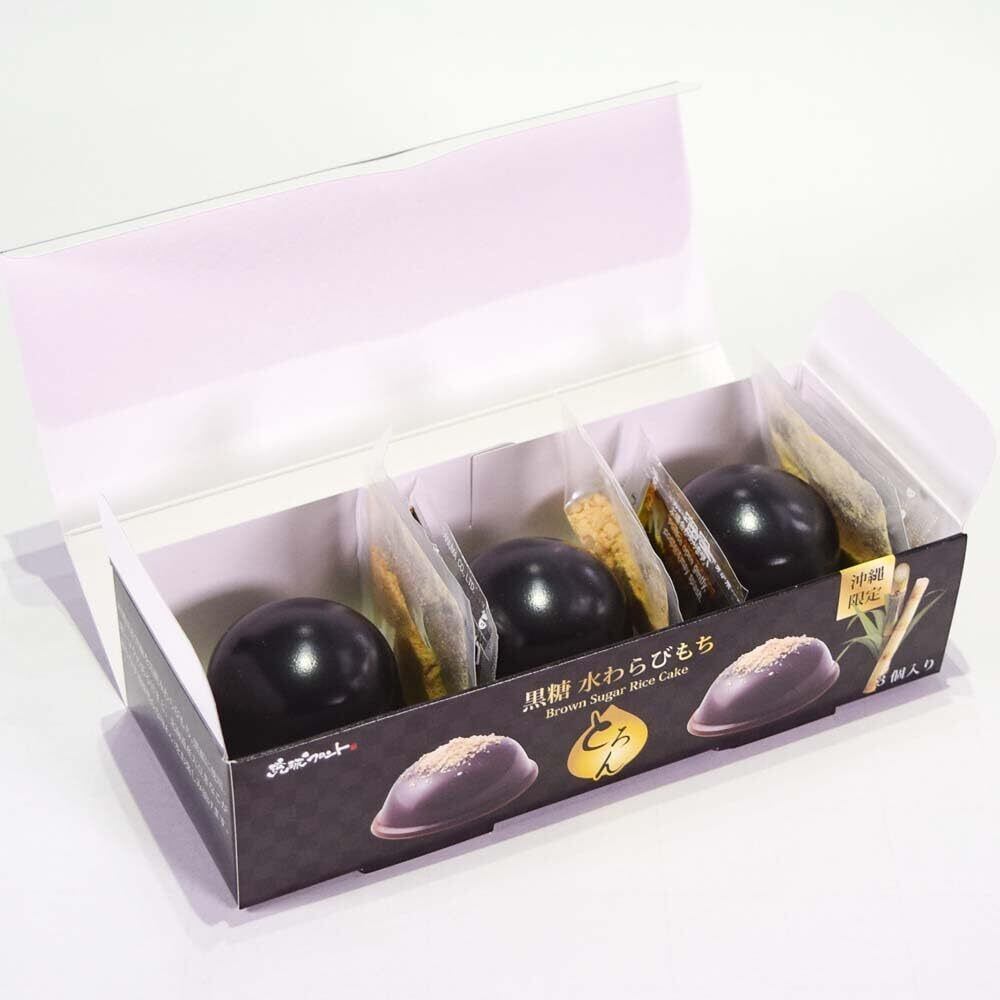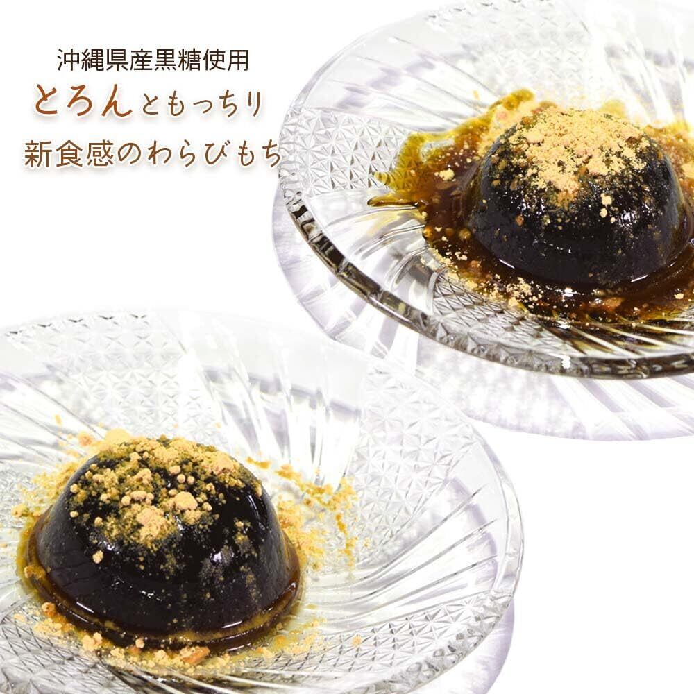 沖縄県産黒糖を使用したとろんともっちり新食感のわらびもち。きな粉と黒蜜をかけて風味豊かな味わいを楽しめます。