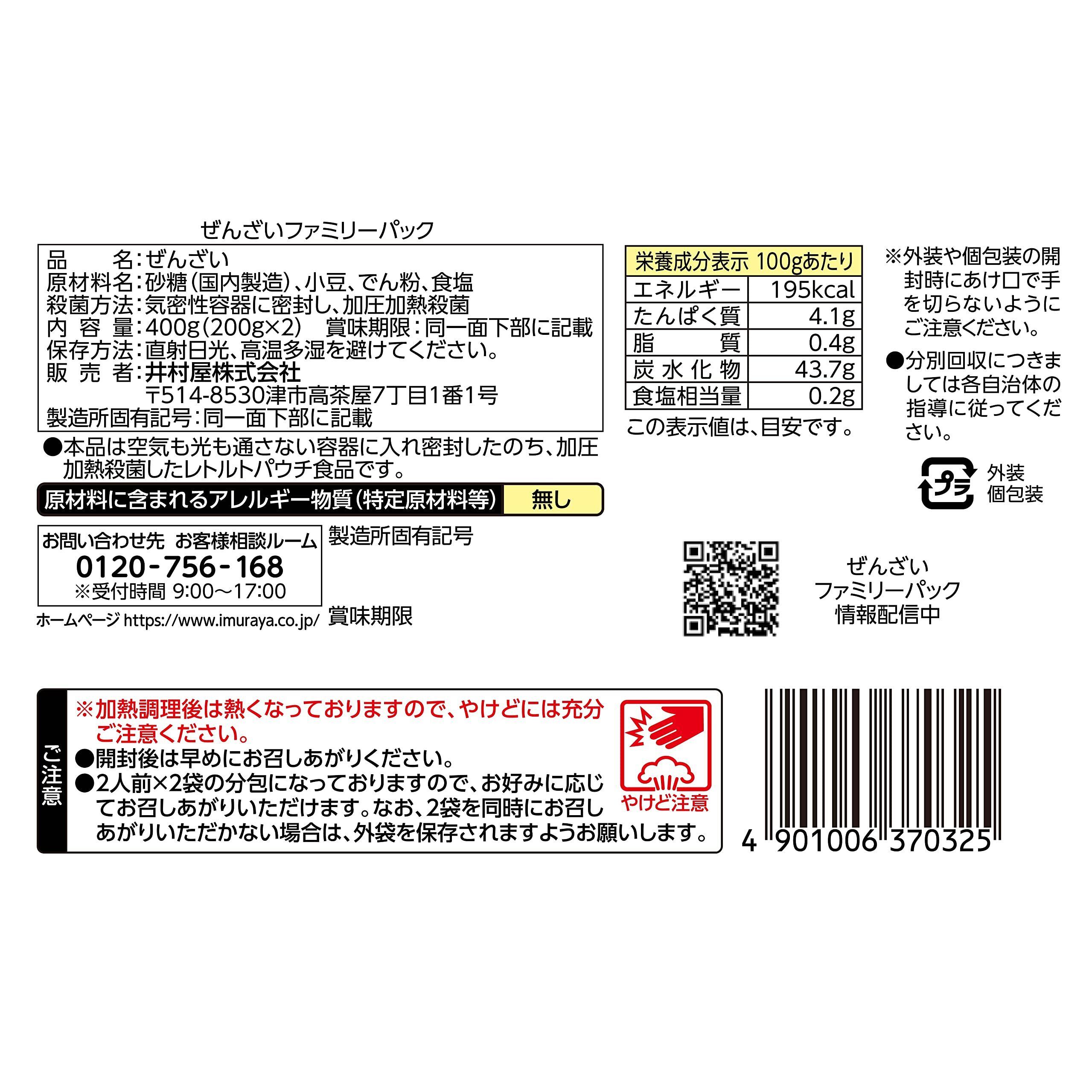 井村屋 ぜんざいファミリーパック 200g×2袋×12袋