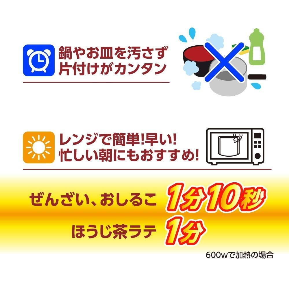 開封せずに袋のまま電子レンジで加熱するだけで温かいぜんざいが楽しめます